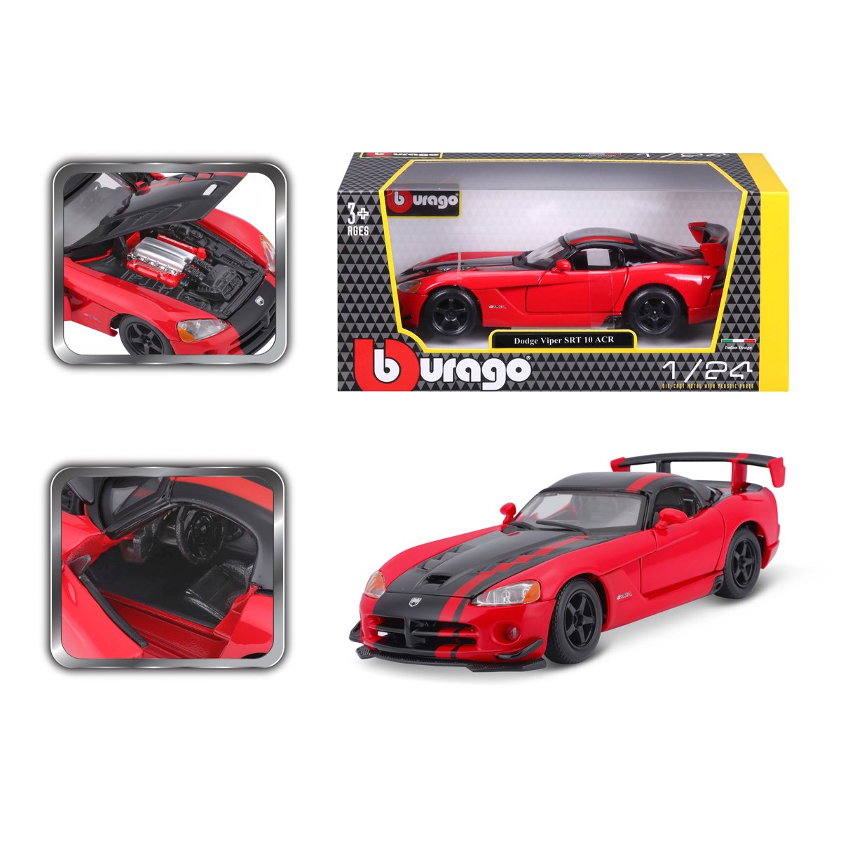 Bburago - Auta HOBBY, Dodge Viper SRT 10 ACR, červeno-černá, 1:24