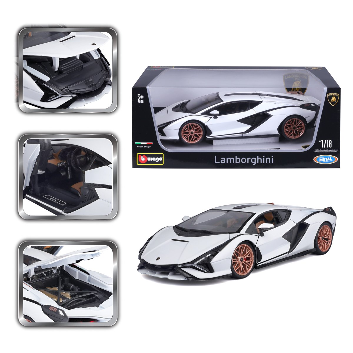 Bburago - Auta HOBBY, Lamborghini Sián FKP 37, bílá, 1:18