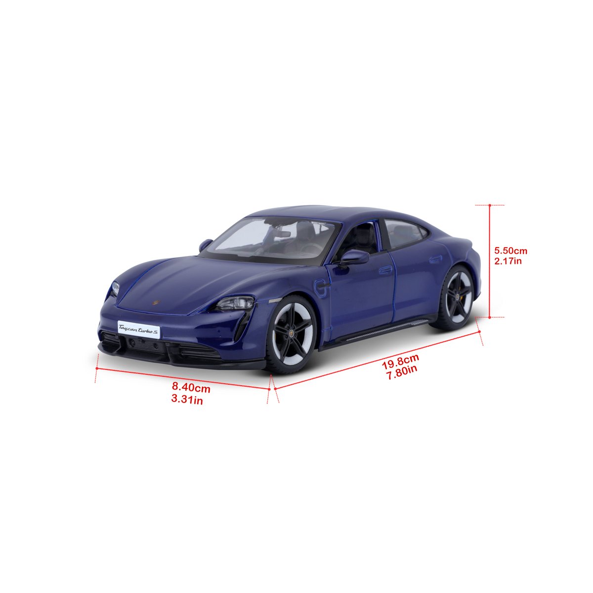 Bburago - Auta HOBBY, Porsche Taycan Turbo S, modrá, 1:24