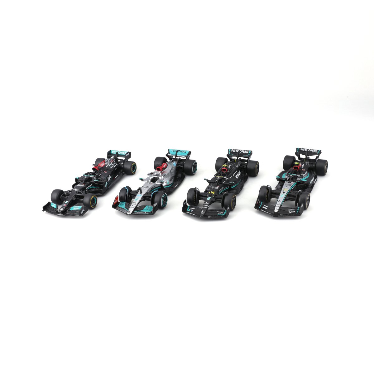 Bburago - FORMULA RACING F1 4 Pack – Mercedes-AMG Petronas, #44 L.Hamilton + #63 G.Russell, 1:43