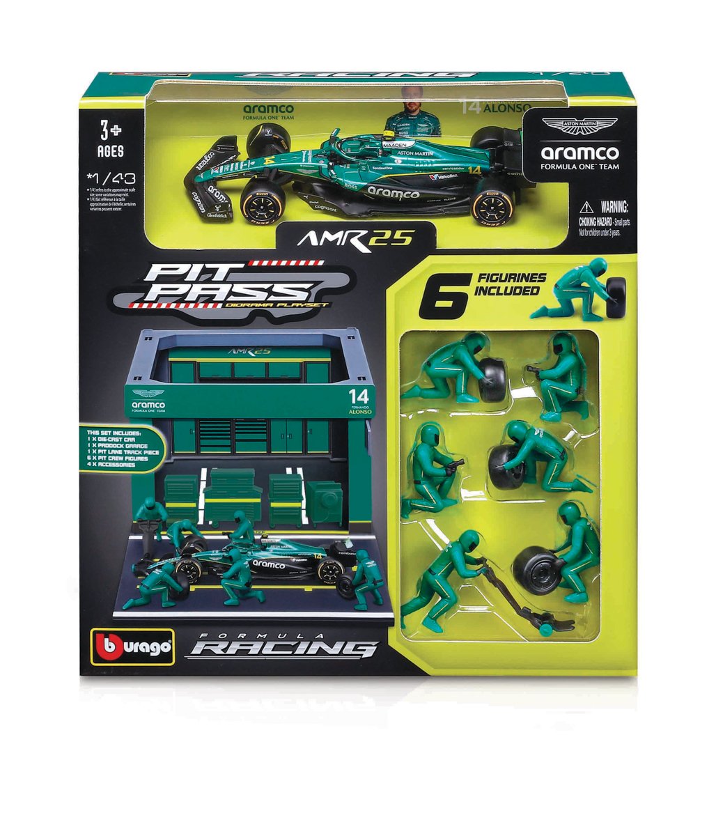 Bburago - Formula Racing F1 Pit Pass set - Aston Martin AMR25 (2025), #14 Fernando Alonso, 1:43