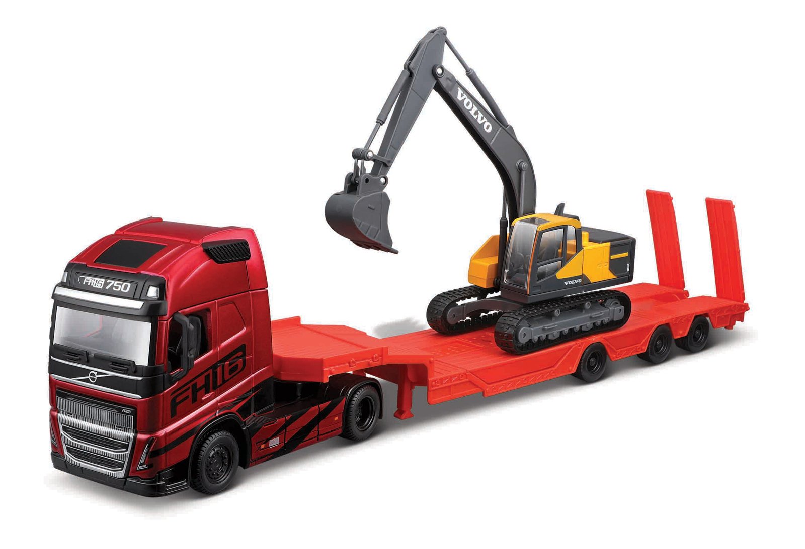 Bburago - Haulers construction, Kamion Volvo FH16 Globetrotter 750 XXL s bagrem Volvo EC220E, 1:43