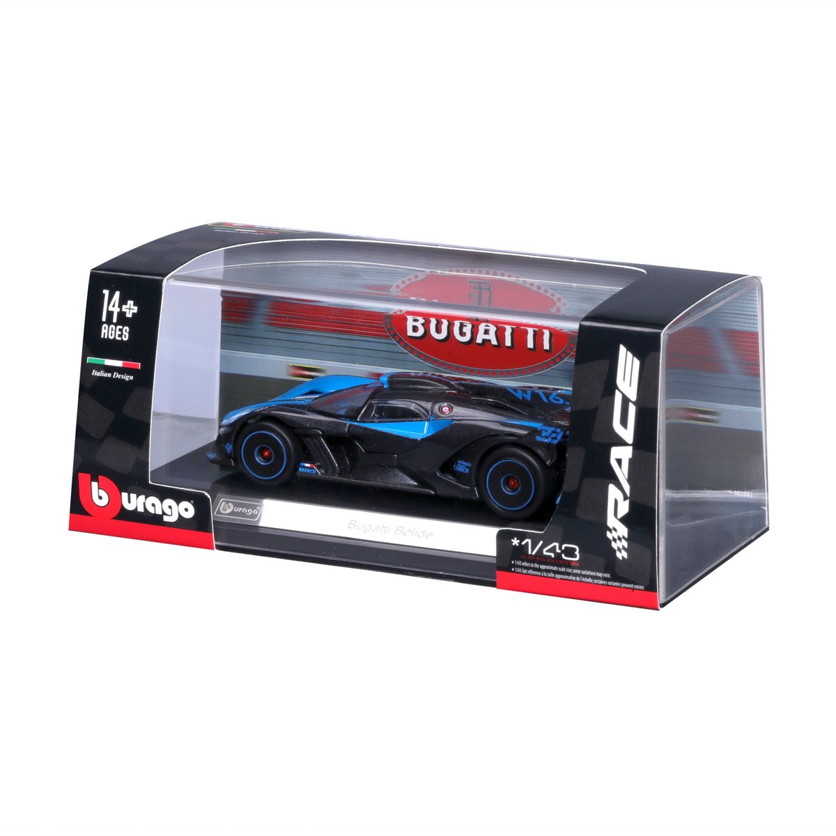 Bburago - RACE, Bugatti Bolide v dekorativním boxu, černá metalíza-modrá, 1:43