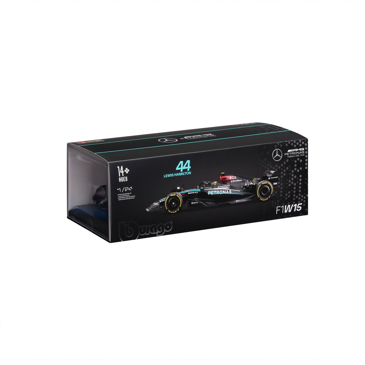 Bburago - RACE F1 v dekorativním boxu, Mercedes-AMG Petronas W15 (2024), #44 Lewis Hamilton, 1:24