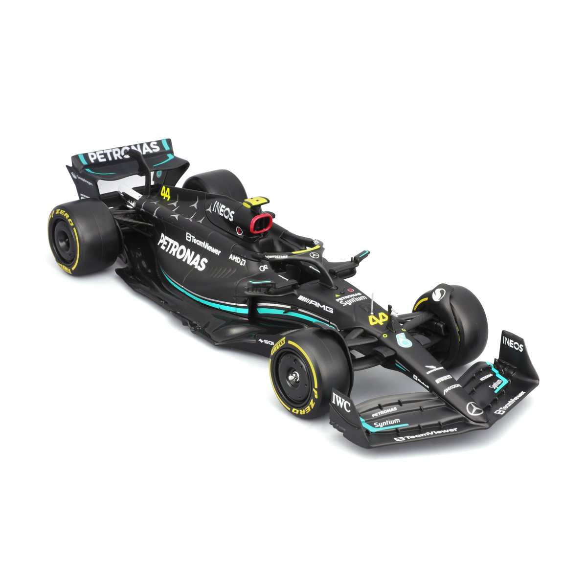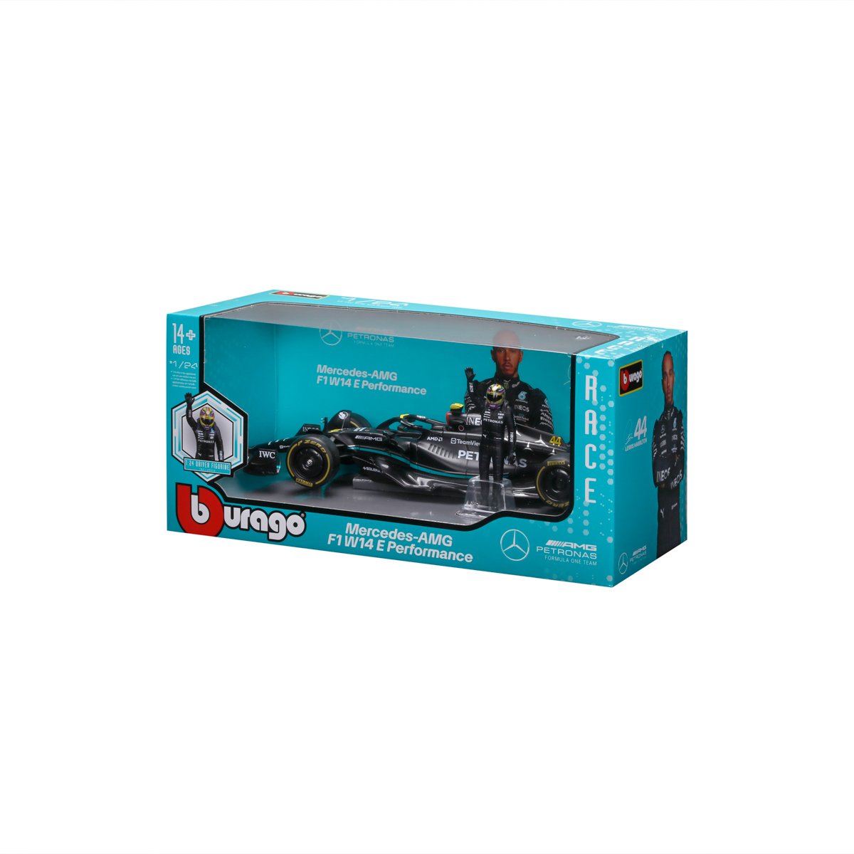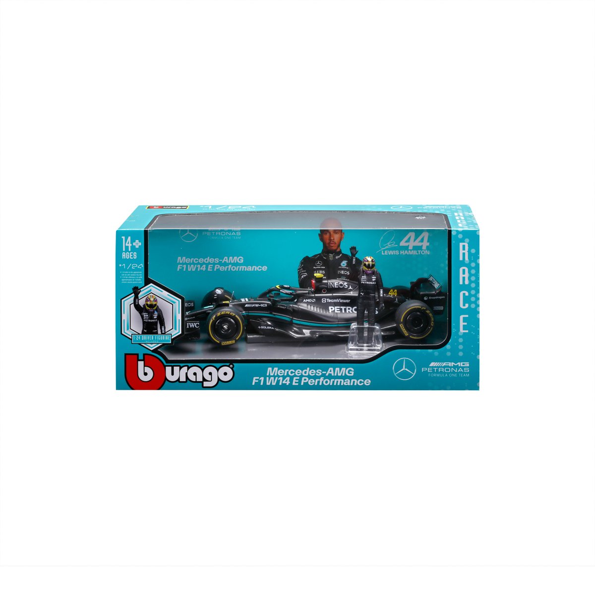 Bburago - RACE Formule F1 s figurkou jezdce, Mercedes-AMG W14 E Performance (2023) #44 Hamilton,1:24
