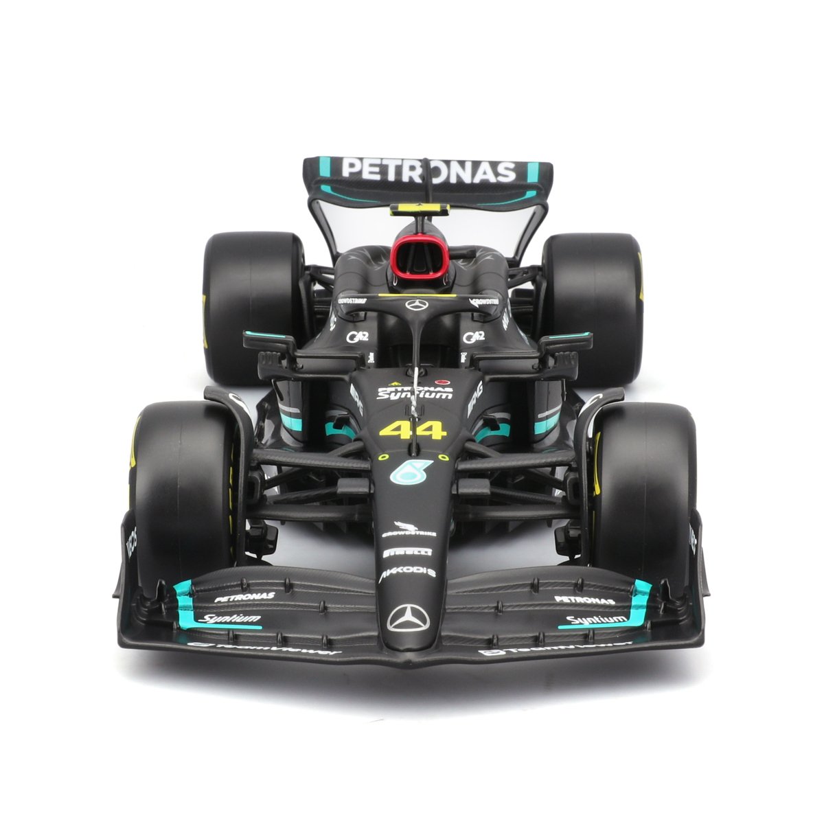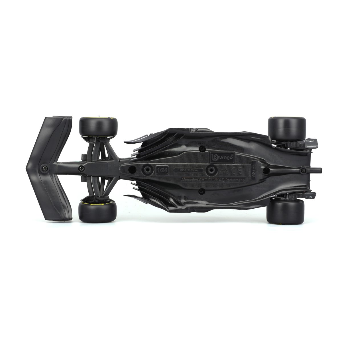 Bburago modely závodních vozů Formule 1 v měřítku 1:24 z kolekce RACE jsou sbírkou krásného designu s vysokým důrazem na přesnost detailů. Součástí modelů je plastová figurka jezdce F1 v mistrovské póze. Modely F1 ze stáje Mercedes-AMG Petronas Team W14 E Performance (2023) jsou vyrobeny z litého kovu s plastovými detaily. Každý z modelů je v klasickém závodním designu a se závodním číslem. Baleno v krabičce. Nevhodné pro děti do 3 let. Rozměry balení: 12,7 x 28 x 12,7 cm. Věk: 14+