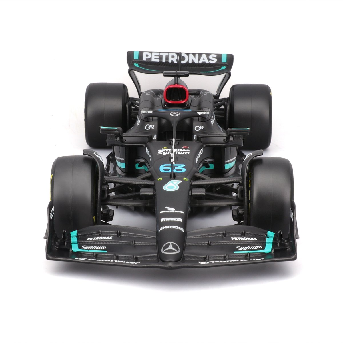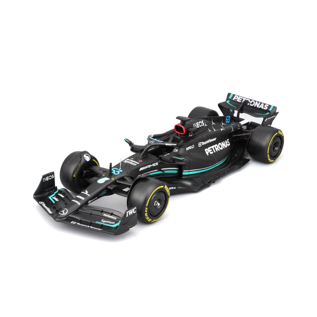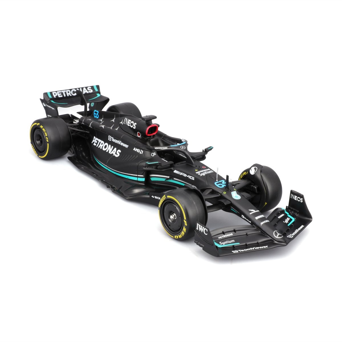 Bburago - RACE Formule F1 s figurkou jezdce, Mercedes-AMG W14 E Performance (2023) #63 Russell, 1:24