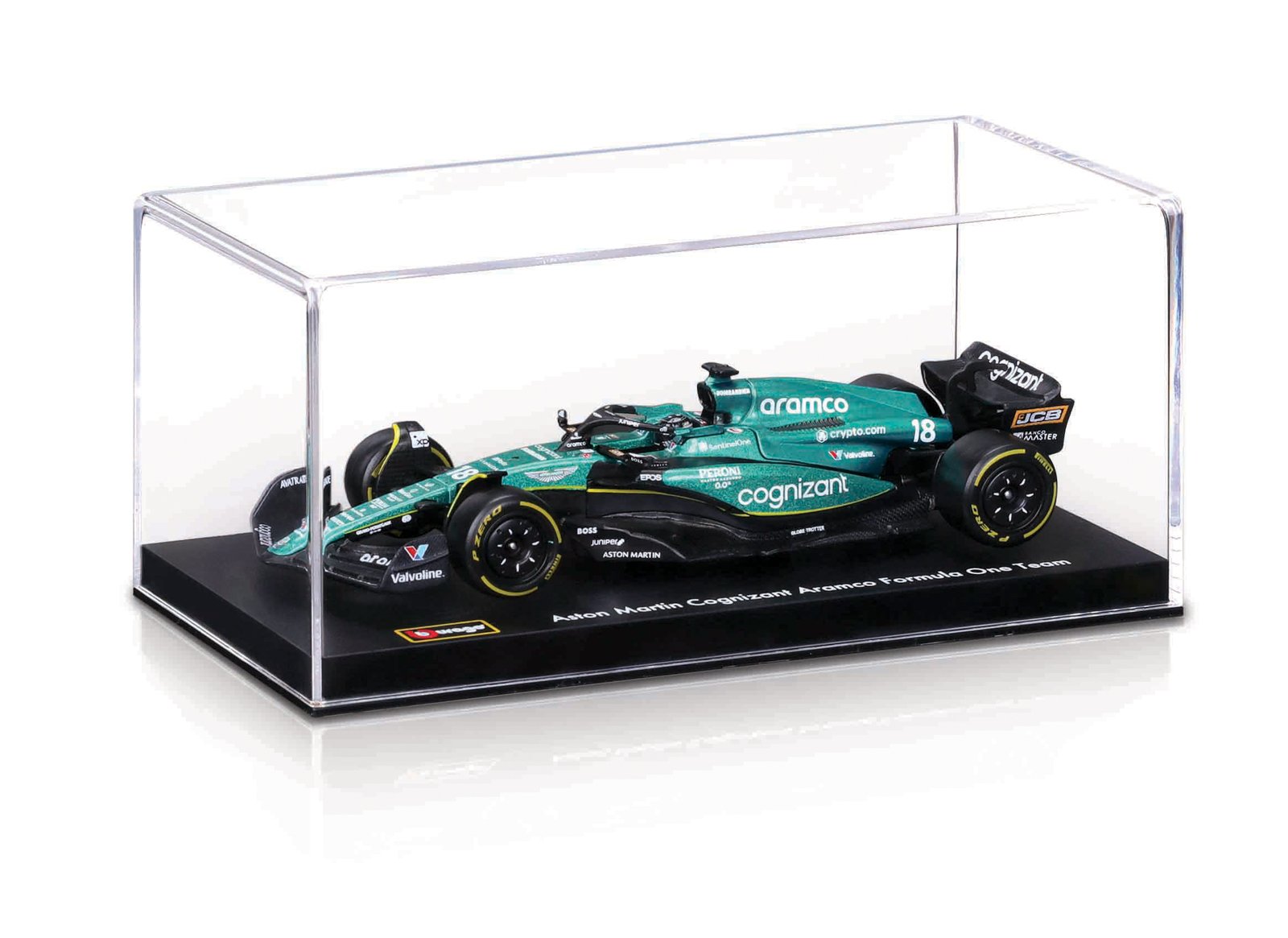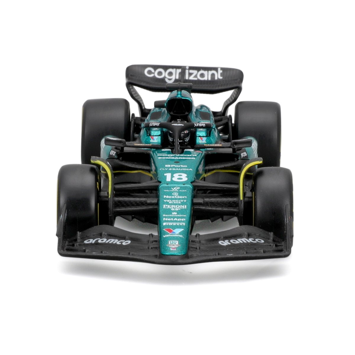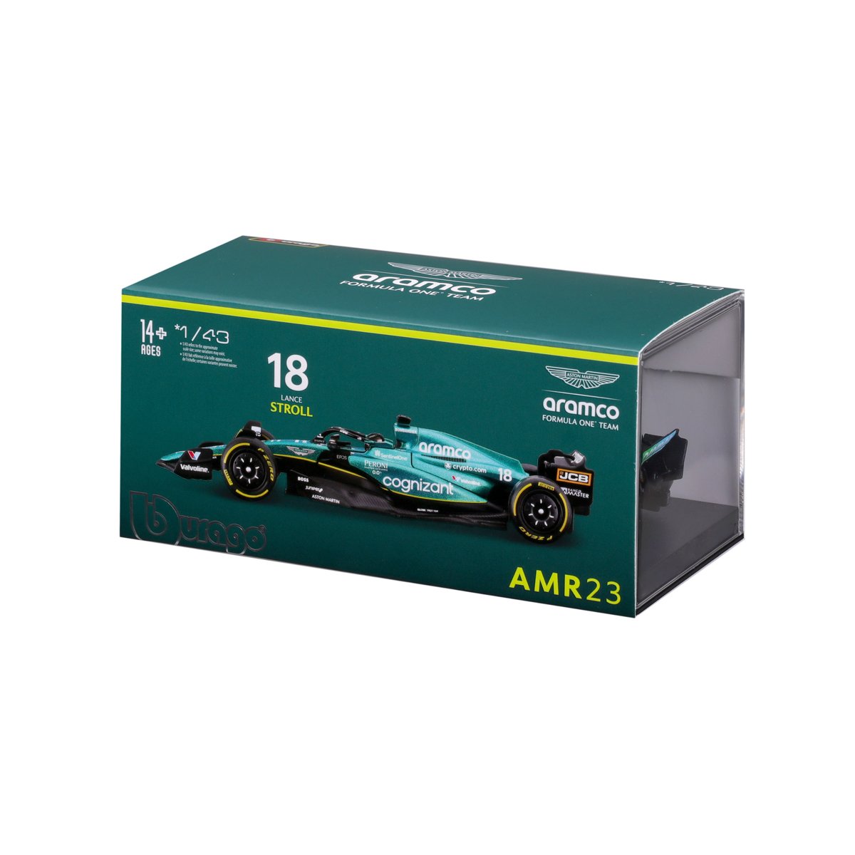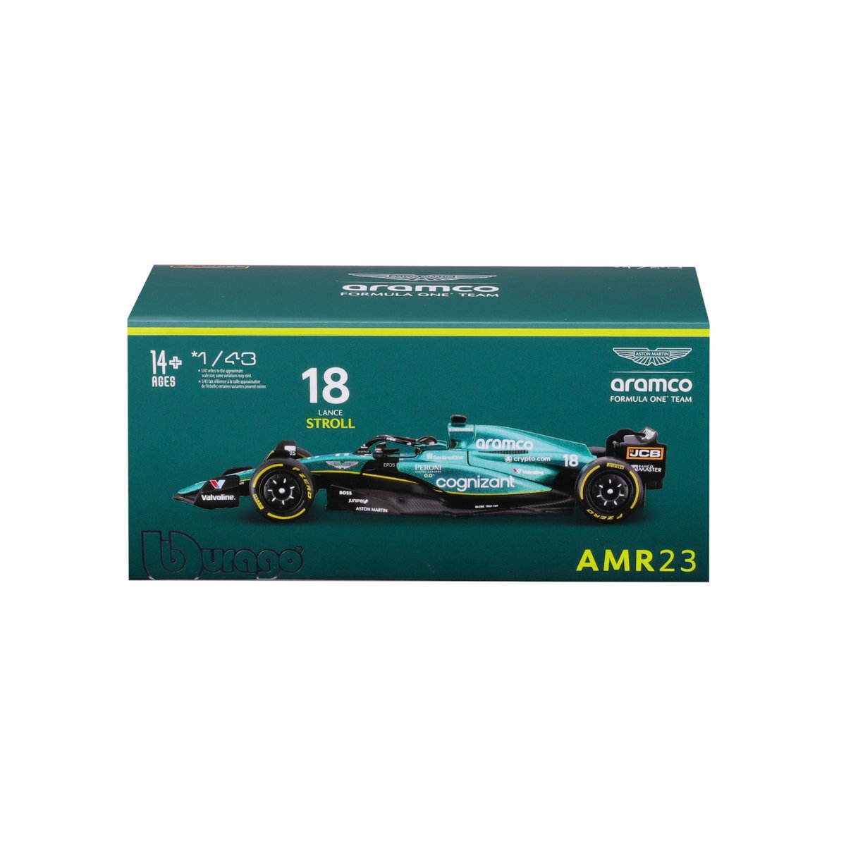 Bburago - RACE Formule F1 v dekorativním boxu, Aston Martin AMR23 (2023), #18 Lance Stroll, 1:43