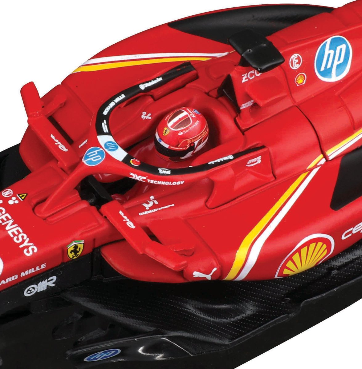 Bburago modely závodních vozů Formule 1 v měřítku1:43 z kolekce FORMULA RACING jsou sbírkou krásného designu s vysokým důrazem na přesnost detailů. Formule ze stáje Ferrari SF-24 (2024) s autentickými detaily závodního vozu a helmy jezdce. Modely jsou vyrobeny z litého kovu s plastovými detaily. Každý z modelů v klasickém závodním designu je umístěn v dekorativním akrylovém boxu. Díky dekorativnímu boxu je tento model skvělým sběratelským kouskem a dárkem pro každou příležitost. Nevhodné pro děti do 3 let. Rozměry balení: 6,7 x 14,7 x 7,5 cm. Věk: 14+
