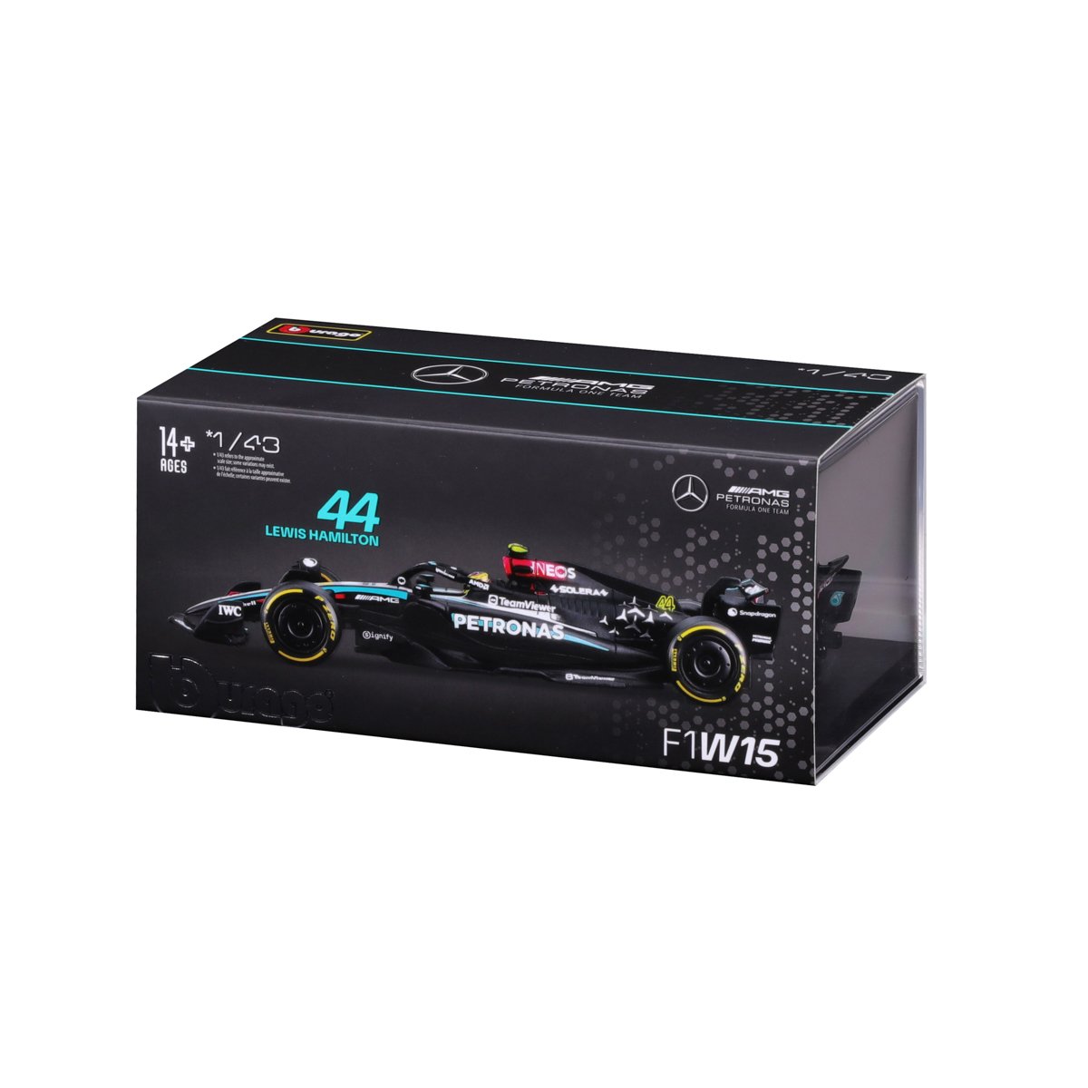 Bburago - RACE Formule F1 v dekorativním boxu, Mercedes-AMG Petronas W15 (2024), #44 Hamilton, 1:43