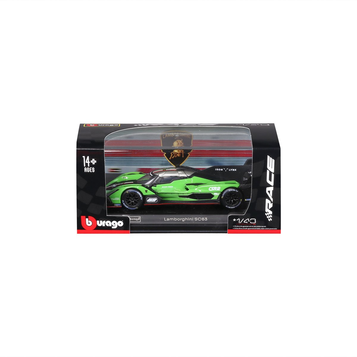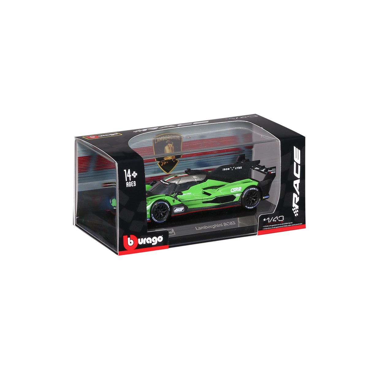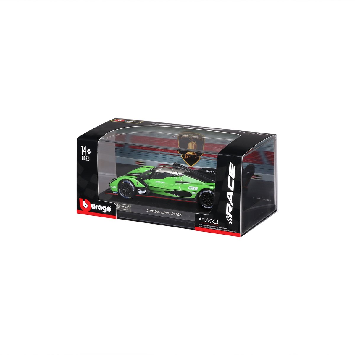 Bburago - RACE, Lamborghini SC63 v dekorativním boxu, zelená-černá, 1:43