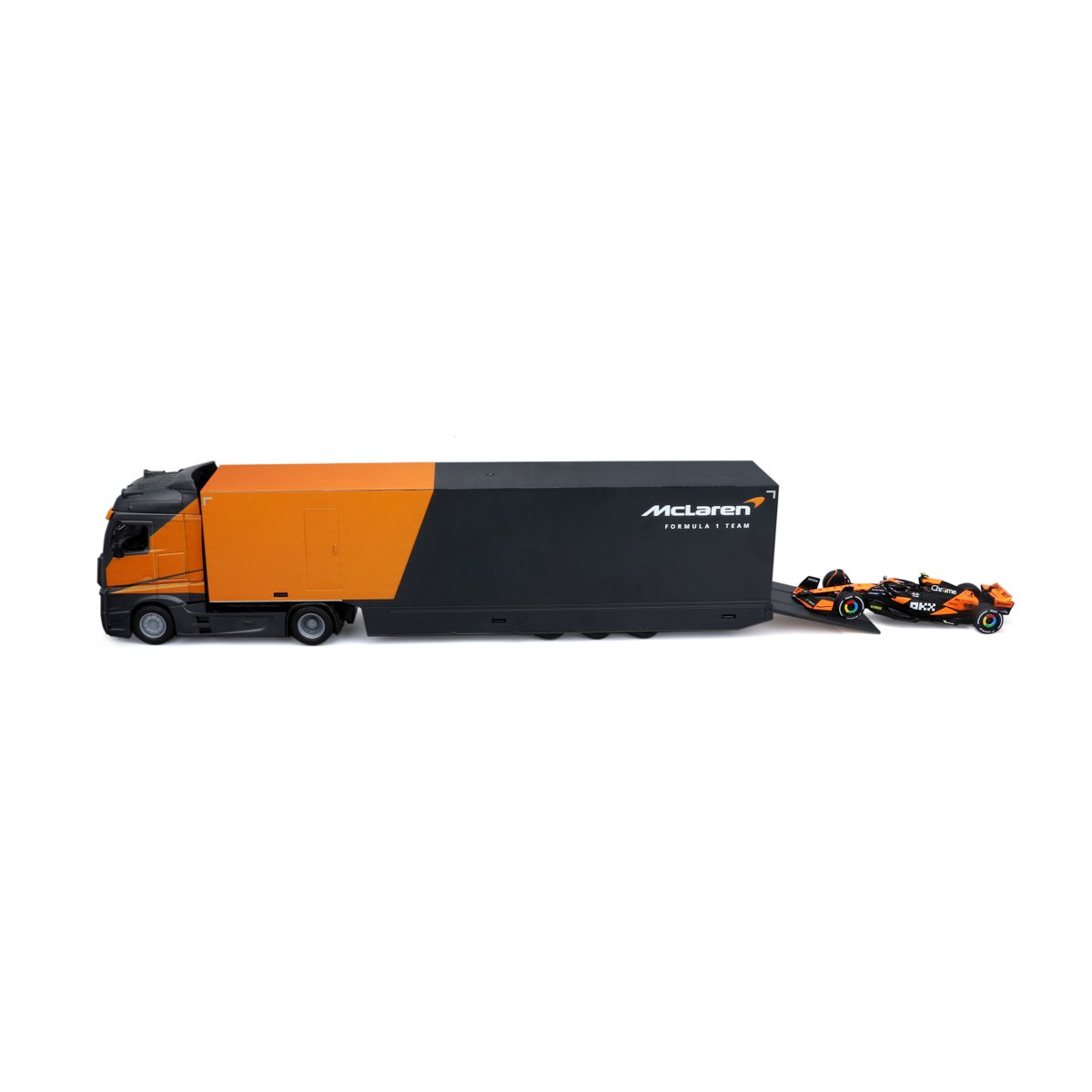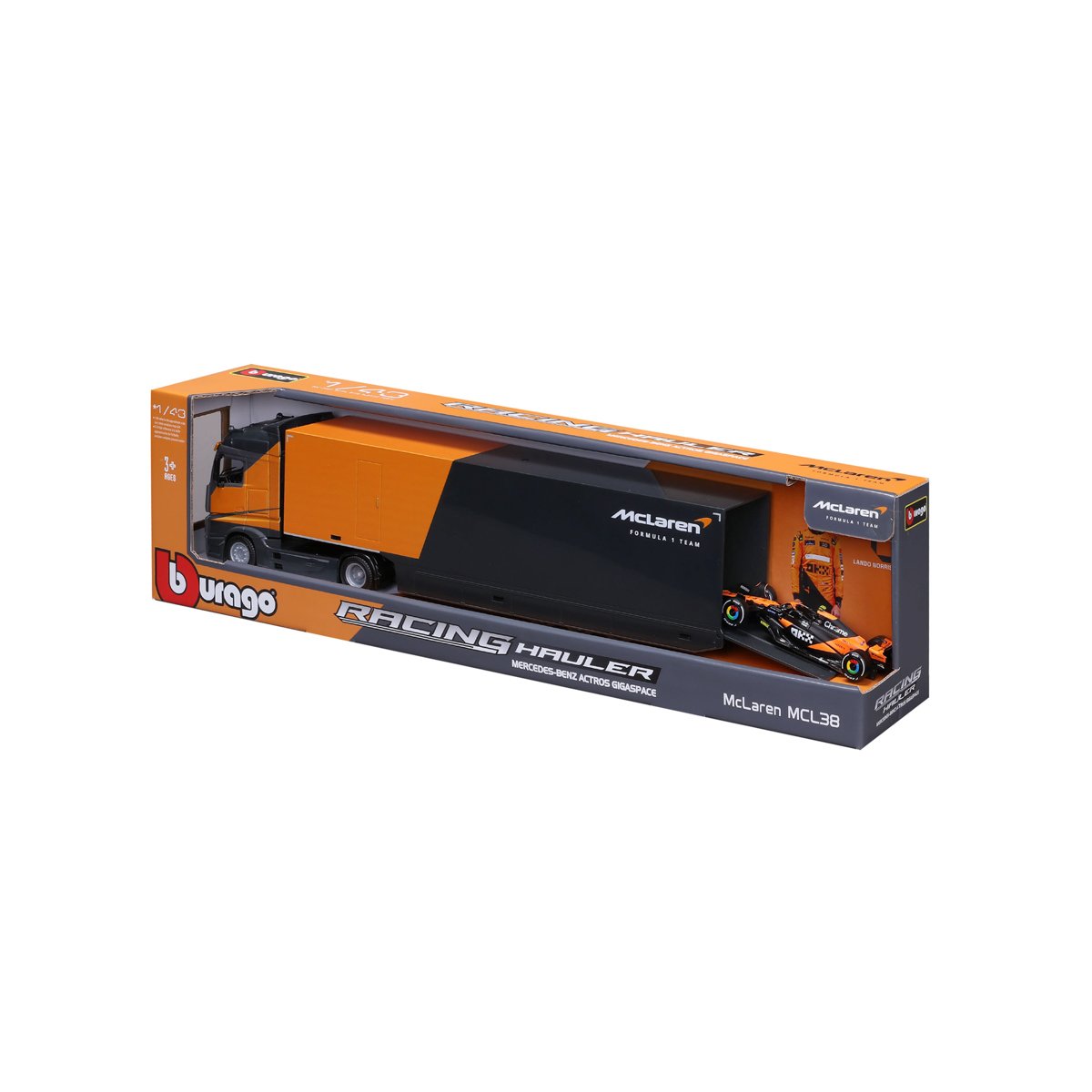 Bburago – RACE M-B Tahač s návěsem + F1 McLaren Team MCL38 (2024), #4 Lando Norris, 1:43