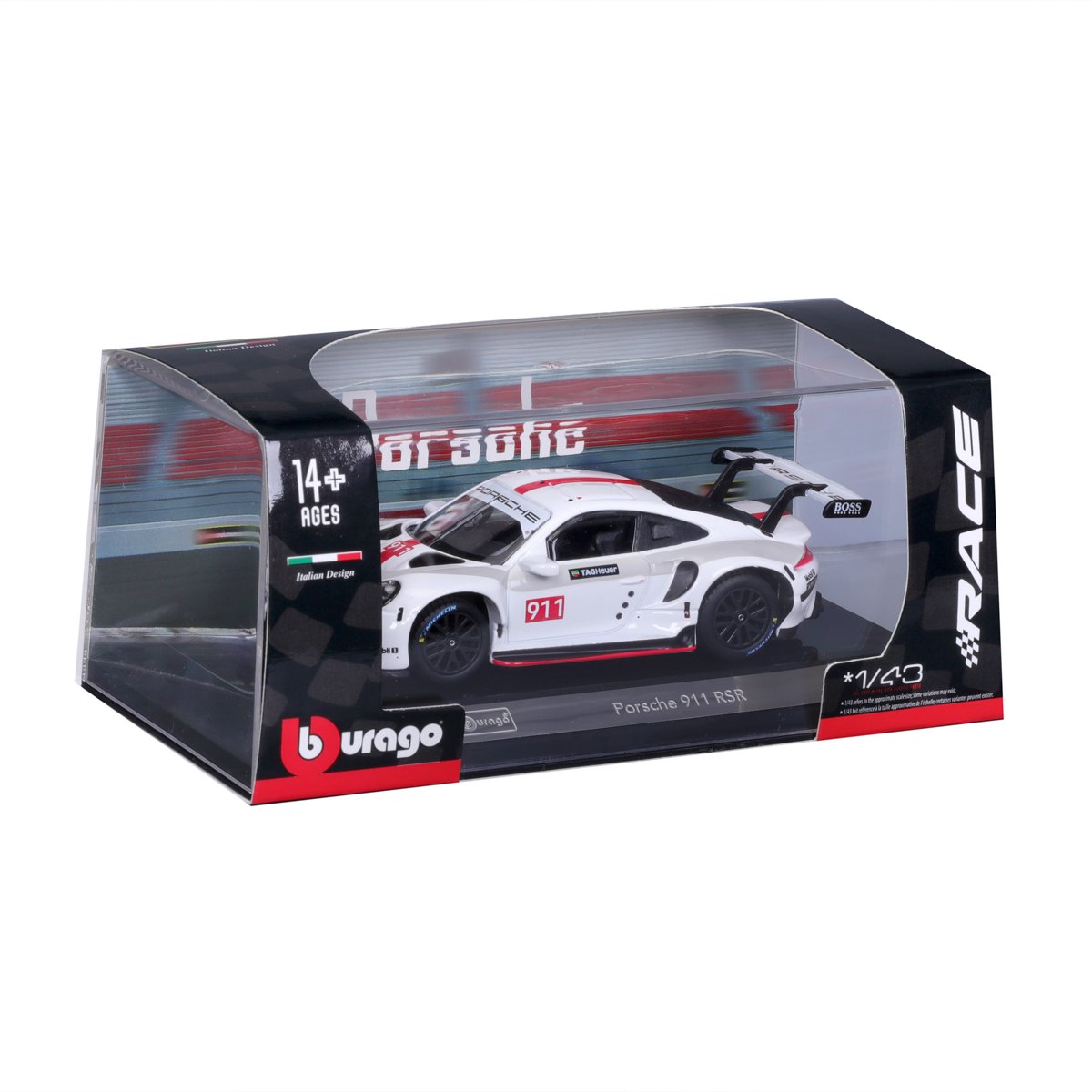 Bburago - RACE, Porsche 911 RSR v dekorativním boxu, bílá, 1:43