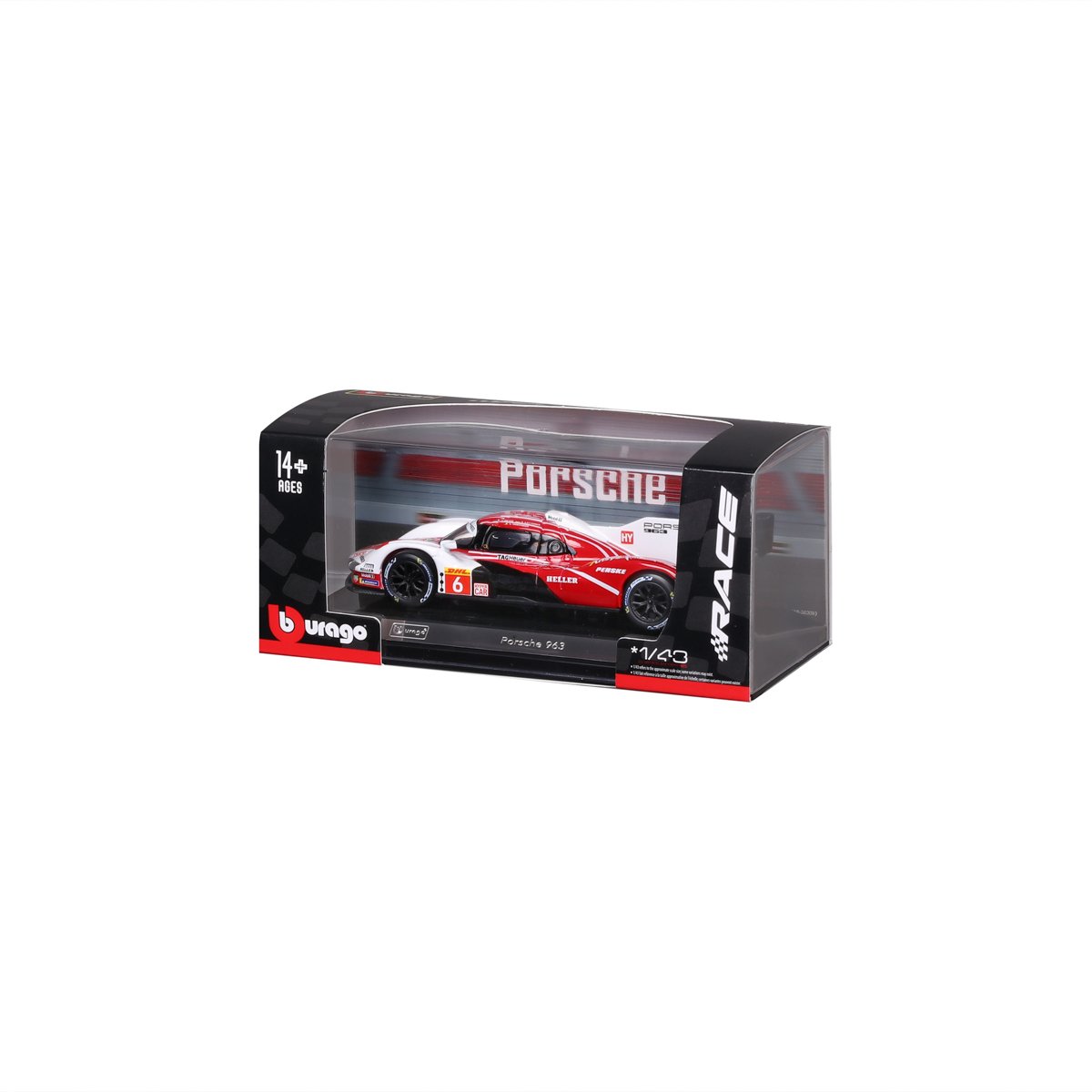 Bburago - RACE, Porsche 963 v dekorativním boxu, bílá-červená, 1:43