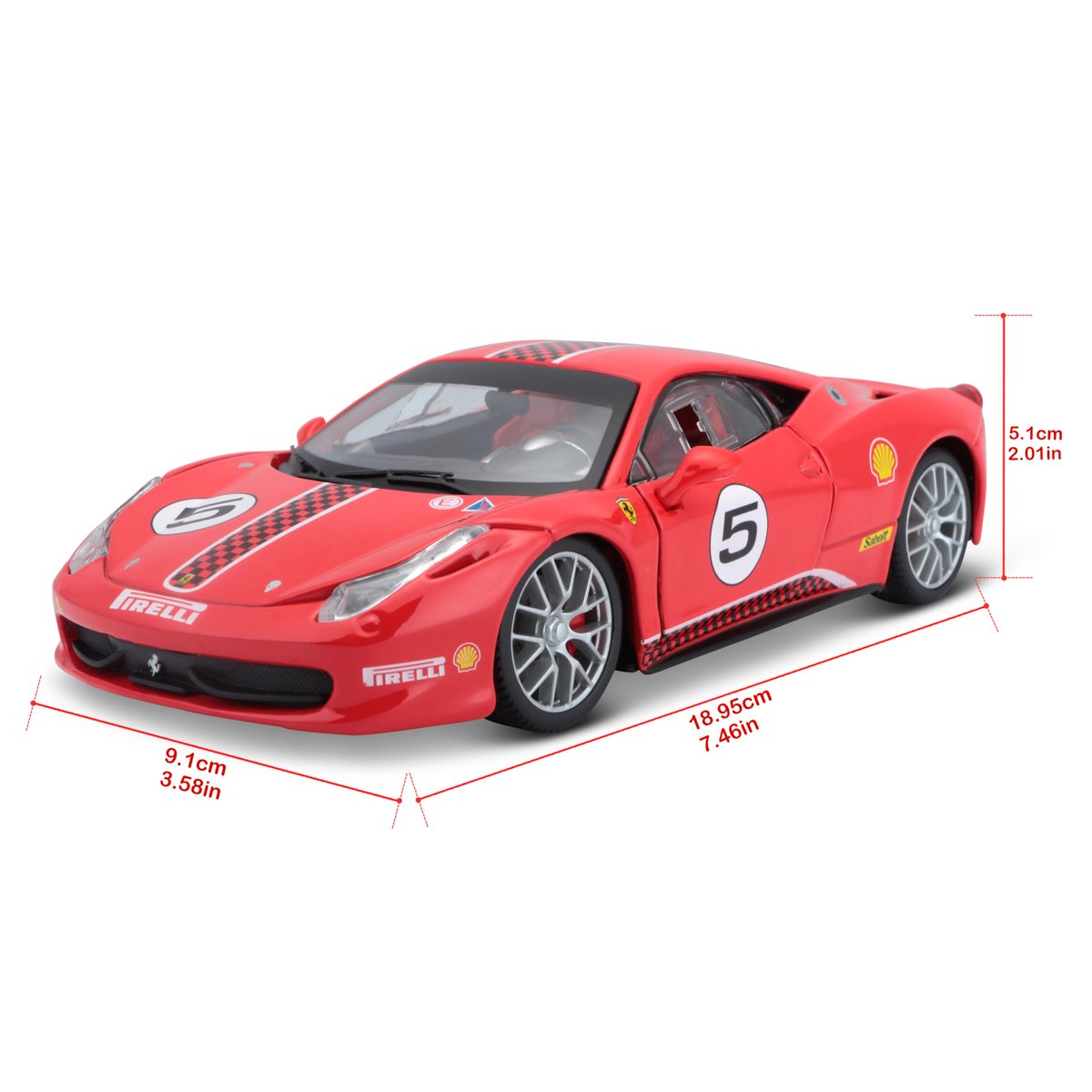 Modely závodních automobilů Ferrari v měřítku 1:24 z kolekce RACING jsou sbírkou krásného designu s vysokým důrazem na přesnost detailů. Modely jsou vyrobeny z litého kovu s plastovými detaily. Detailní provedení motorových prostor a interiéru. Většina modelů z kolekce má otevírací dveře, kufr nebo kapotu. Některé z modelů mají funkční řízení. Každý z modelů je v závodním designu a se závodním číslem Model je namontován na výstavním stojánku. Baleno v krabičce. Nevhodné pro děti do 3 let. Rozměry balení: 10,3 x 24,5 x 12,6 cm. Věk: 14+