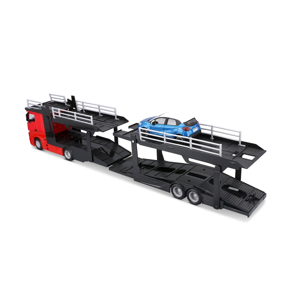 Bburago - STREET FIRE, Kamion s návěsem Multicar Carrier M-B Actros + Reanult Captur, 1:43