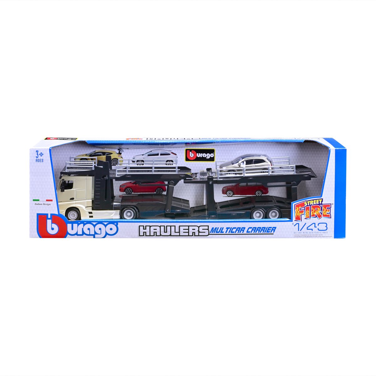 Bburago - STREET FIRE, Kamion s návěsem Multicar Carrier M-B Actros + VW Polo GTI Mark 5