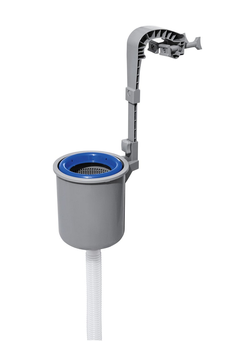 Bazénový sběrač nešistot z hladiny bazénu. Polypropylenový plast s dlouhou životností, odolný vůči bazénovým chemikáliím. Vyjímatelný vnitřní filtrovací košík pro jednoduché čistění. Tento bazénový sběrač nečistot z hladiny bazénu je vhodný pro všechny typy nadzemních bazénů. Je vhodný jak na bazény s kovovou konstrukcí, tak na bazény s nafukovacím okrajem. Skimmer se velmi jednoduchým způsobem upevní na okraj bazénu. K tomu jsou u každého skimmeru 2 druhy nástavců. Jeden z nástavců je určen pro bazény s nafukovacím okrajem a druhý je určen pro bazény s kovovou konstrukcí. Obsahem balení jsou oba dva typy upevnění. Rozměry: 25 x 32 x 25 cm