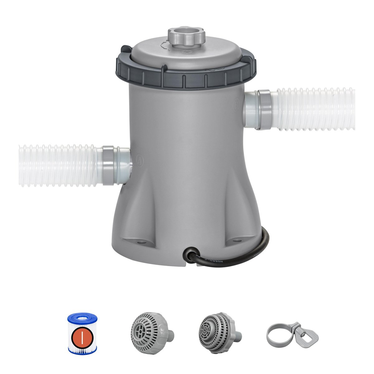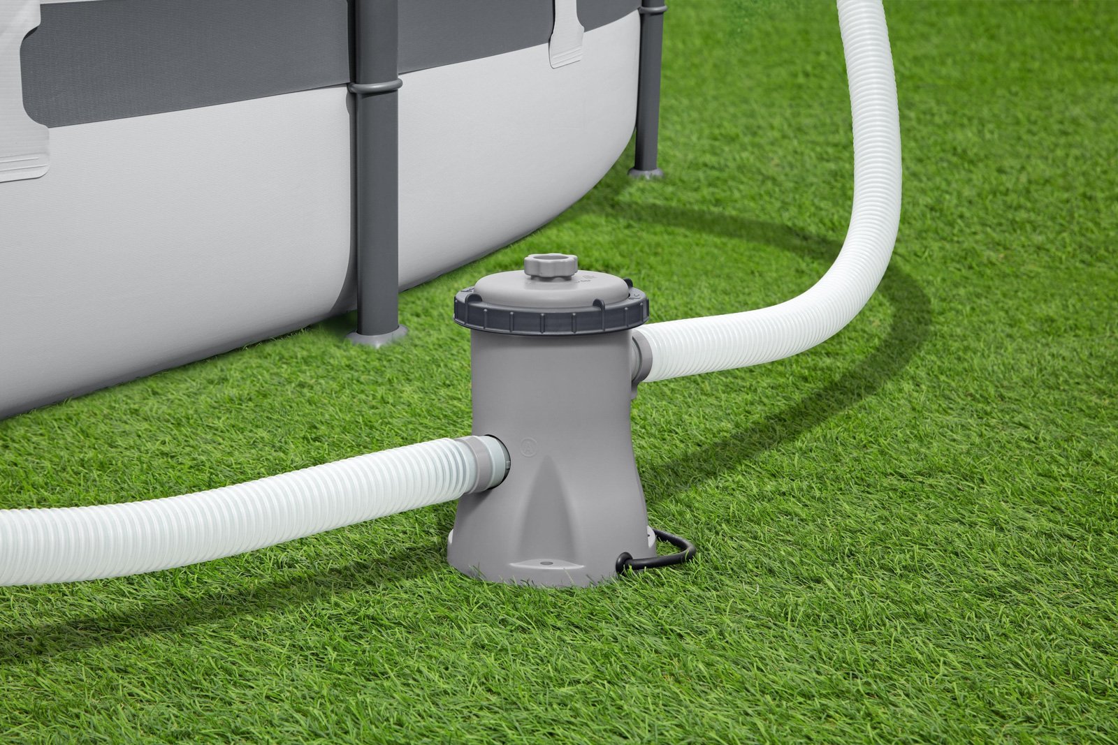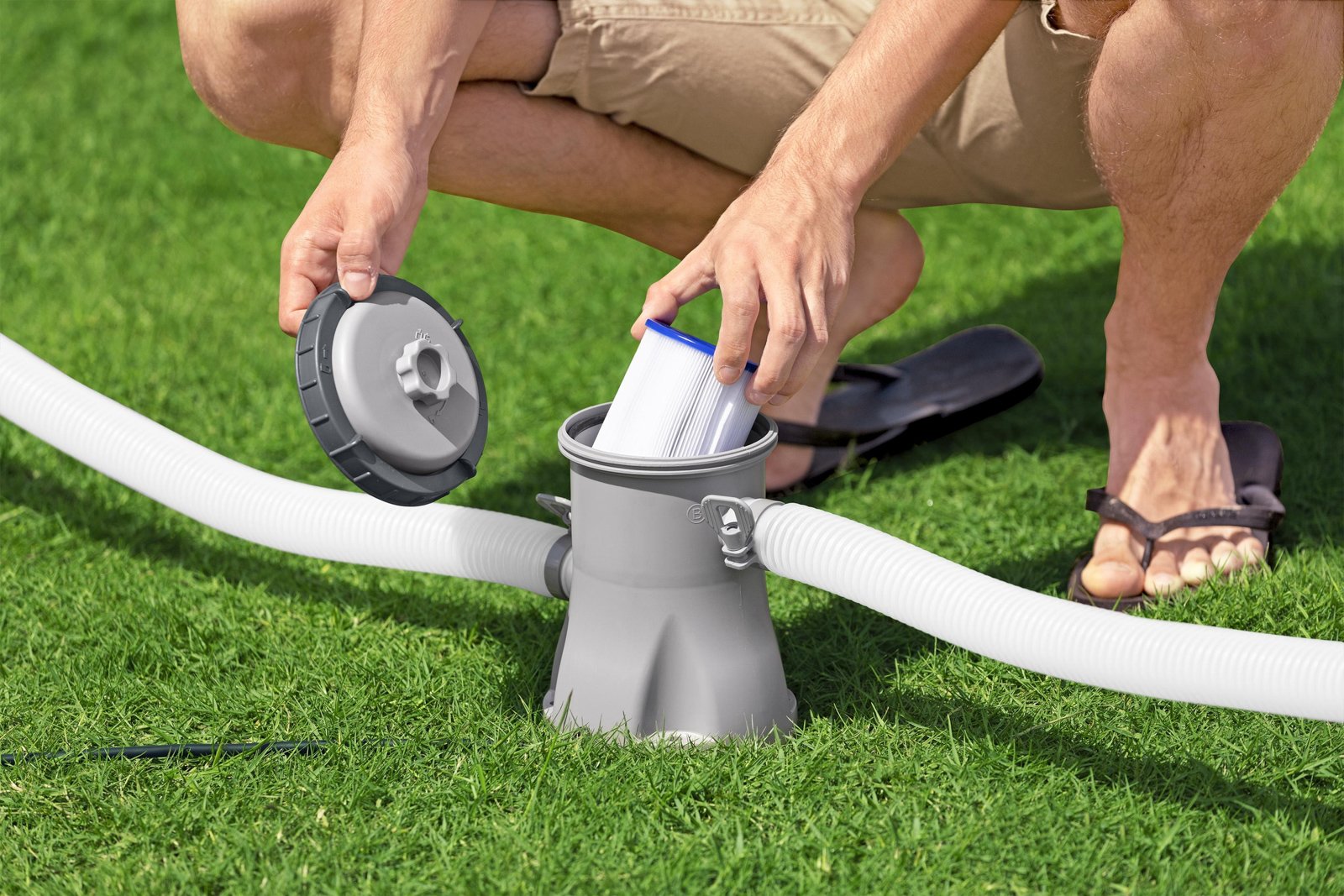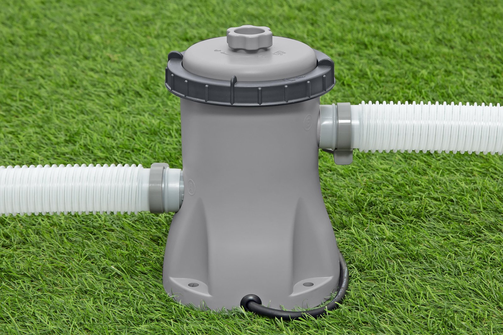 Kartušová filtrace Flowclear s průtokem vody (výkon čerpadla): 1 249 l/h. Průtok vody integrovaným systémem bazénu (průtok systému): 1 060 l/h. Lze připojit ke všem bazénům o objemu 1 100–8 300 l. Rozměr připojení k hadici: 3,2 cm. Filtrační vložka: 58093(I). 110-120V~, 0.2A. 220-240V~, 16W. Obsahuje: 1 kartušová filtrace.