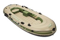 Nafukovací člun Voyager v zelené barvě je to pravé pro vaše dobrodružství! Člun je vyroben z odolného a předem testovaného PVC materiálu o síle 0,55 mm. Je vybaven rychloupínacími ventily, bezpečnostním ventilem a lanem s vestavěnými průchodkami po celém obvodu. Pro váš maximální komfort má člun nafukovací podlahu a sedačky. Člun je možné uživat i s motorem, protože obsahuje montážní průchodky pro použití s motorem (motor však není součástí). Jistě oceníte i další praktické detaily, jako napřílad pevné rukojeti, držáky rybářských prutů, hliníková vesla (145 cm) a možnost uzamknutí vesel. Opravná sada je součástí balení. Maximální nosnost: 260 kg (3 pasažéři). Váha: 16,4 kg. Rozměr: 348 x 141 x 51 cm.