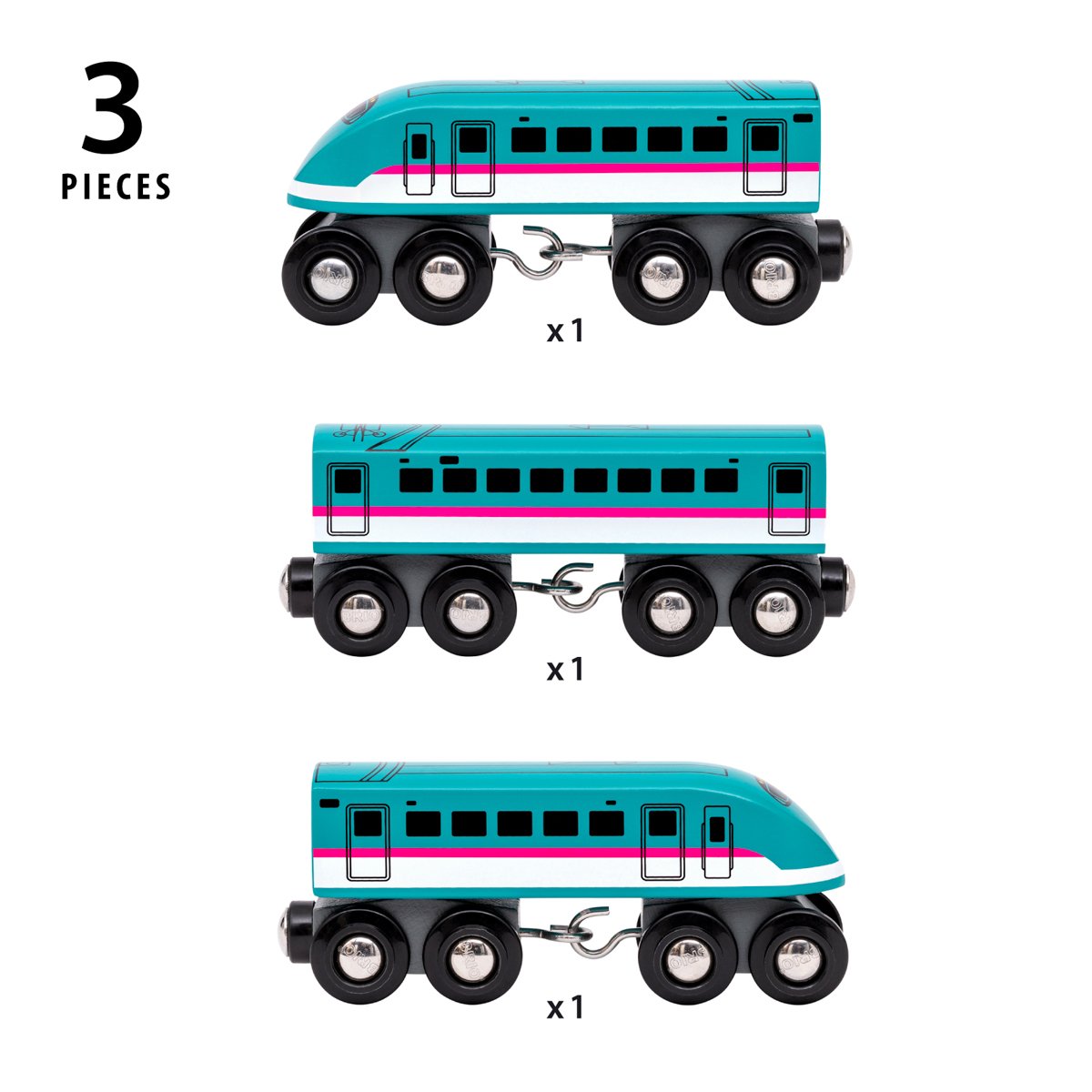Projeďte úžasnou japonskou krajinou na palubě vlaku Šinkanzen Hajabusa E5 – součásti edice světové vlaky. Tento dřevěný vysokorychlostní vlak má dvě lokomotivy a jeden osobní vagón v zářivých barvách, přičemž každý má osm kol na dvojitých podvozcích. Hajabusa, která dosahuje maximální rychlosti 320 km/h, je nejrychlejším rychlovlakem v celém Japonsku. Prozkoumejte další ikonické železniční trasy a slavné vlaky z celého světa se zbytkem edice světové vlaky. Sada obsahuje 3 díly: 2x lokomotiva, 1x osobní vagón. Certifikace FSC®. Rozměry balení: 15 x 27 x 5 cm. Věk: 3+