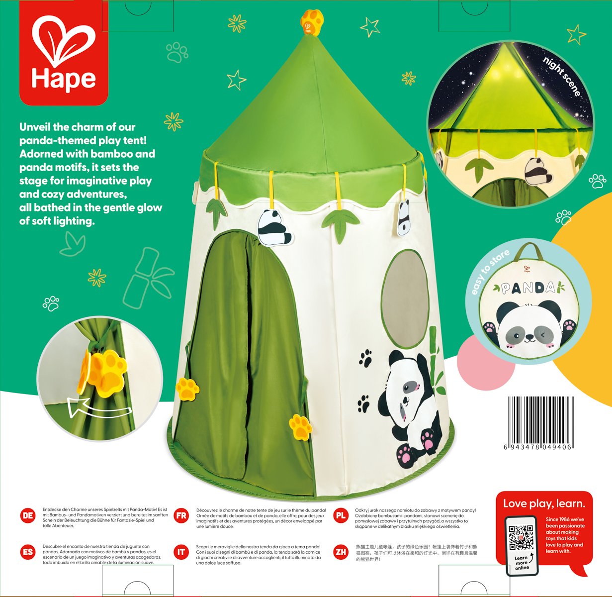 Proměňte dětské hry v kouzelné dobrodružství s tímto rozkošným stanem. Stan navržený speciálně pro nejmenší děti, nabízí bezpečný, pohodlný a zářivý prostor pro hodiny zábavy a fantazie. Roztomilý design s Pandou si děti okamžitě zamilují. Vestavěná LED světla dodají stanu nádech kouzelné magie – ideální pro vyprávění příběhů, hry nebo odpočinek. Lehká skládací konstrukce, snadná montáž a demontáž. Praktická taštička na zip pro snadné uložení stanu. Baterie: 1 x AAA, není součástí. Rozměry stanu: 150 x 100 x 100 cm. Rozměry balení: 58,5 x 58,5 x 8 cm. Věk: 3+