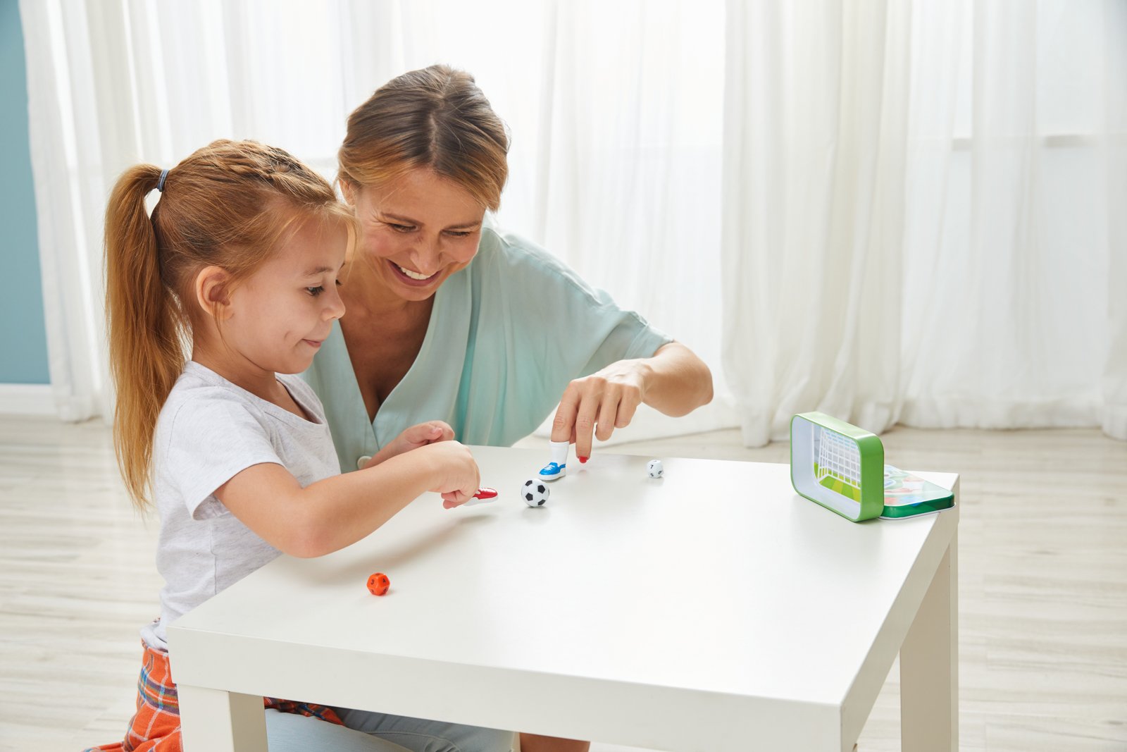 Hra Free Kick – mini prstový fotbal. Vyber si, kdo bude střílet a kdo bude v brance, a pak zkus, kolik bodů dokážeš proti svým přátelům vstřelit! Zkus si 10 střel, pak si vyměň místa a zkus, jestli to zvládneš lépe. Obsahuje: dvě kopačky na prsty, dvě bodovací kostky, jednu kovovou branku a jeden fotbalový míč. Hra je uložena v kovové krabičce. Hračka rozvíjí kreativitu, sociální a jazykové dovednosti. Rozměry balení: 13,2 x 8,5 x 2,7 cm. Věk: 3+