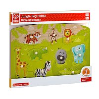 Puzzle na desce s obrázky zvířátek z džungle jsou v ideální velikosti pro malé ručičky. Sada obsahuje 10 dílků. Poutavé barevné provedení. Hračka pomáhá rozvíjet motorické dovednosti. Věk: 24m+. Rozměr: 29,4 x 20,8 x 1,8 cm.