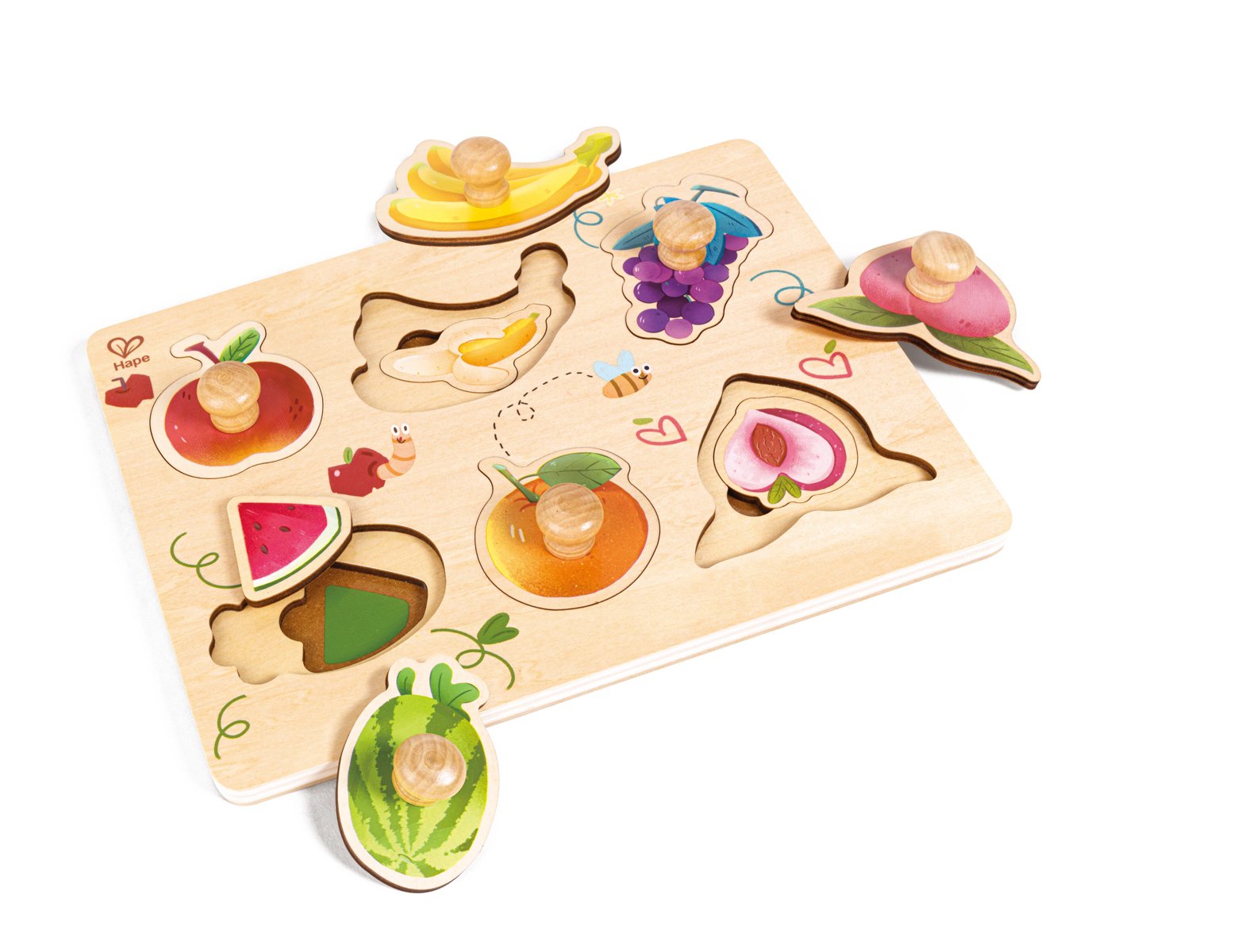 S veselým dřevěným puzzle Hape Fruity Layer objeví vaše batole hravou formou všechny druhy ovoce. Puzzle má dvě vrstvy, což nabízí dvojnásobnou zábavu a pokaždé nové překvapení. Pevné dřevo a barevné ilustrace ho činí pro malé ručičky ještě atraktivnějším. Puzzle Fruity Layer stimuluje jemnou motoriku, koordinaci rukou a očí a schopnost řešit problémy. Díky úchytům mohou malé děti dílky snadno uchopit a umístit. Tímto způsobem se učí rozpoznávat tvary a seznamují se s názvy a barvami ovoce. Obsahuje 12 dílků. Rozměry balení: 28 x 29,5 x 3,5 cm. Věk: 2+