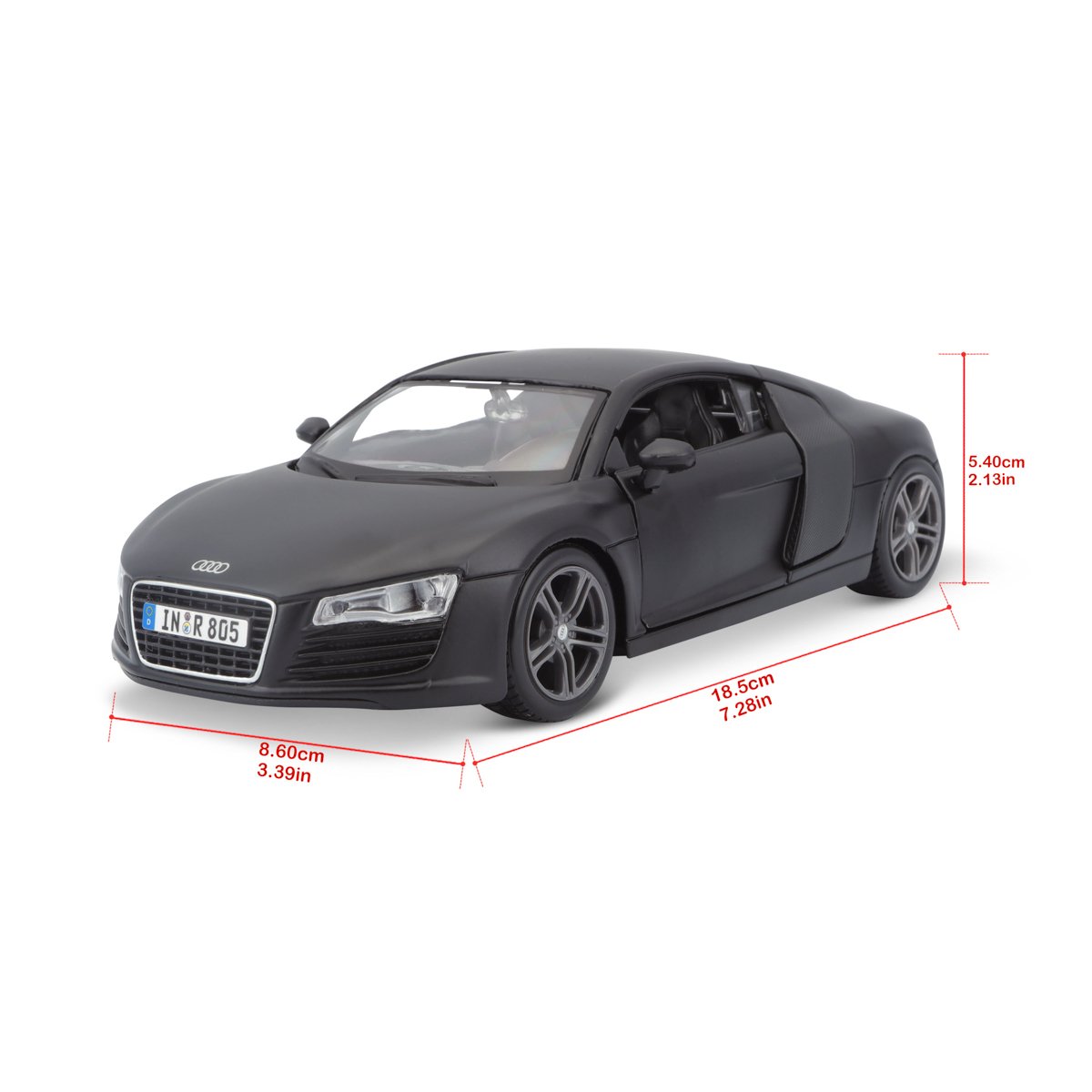 Special Edition 1:24 Audi R8, matně černá. Modely Special Edition jsou sbírkou krásného designu s vysokým důrazem na přesnost detailů. Modely jsou vyrobeny z litého kovu s plastovými detaily. Modely v měřítku 1:24 patří mezi nejoblíbenější. Většina z modelů Special Edition má otevírací dveře, kufr nebo kapotu. Baleno v krabičce. Nevhodné pro děti do 3 let. Rozměry balení: 10,5 x 23,3 x 11,4 cm. Věk 3+