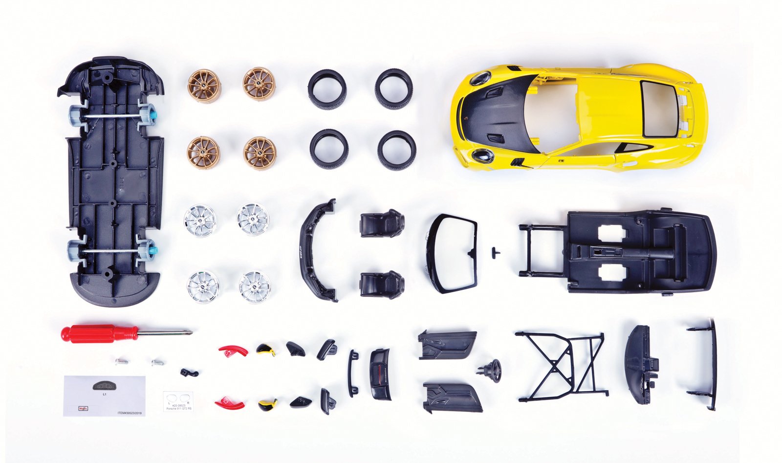 Porsche 911 GT2 RS. Porsche 911 GT2 RS v měřítku 1:24 přesvědčí detailním propracovaným i pohyblivými dveřmi. Krásné sběratelské auto je nutné pro každého sběratele. Model auta se skládá podle obrázkového návodu, který je součástí stavebnice. Jednotlivé části se spojují tlakem bez pomoci lepidla. Součástí balení je šroubovák. Balení obsahuje 42 dílů. Z kovového vstřikovacího odlitku s plastovými díly. Rozměry: 22,9x16,8x 10,2 cm. Věk: 8+