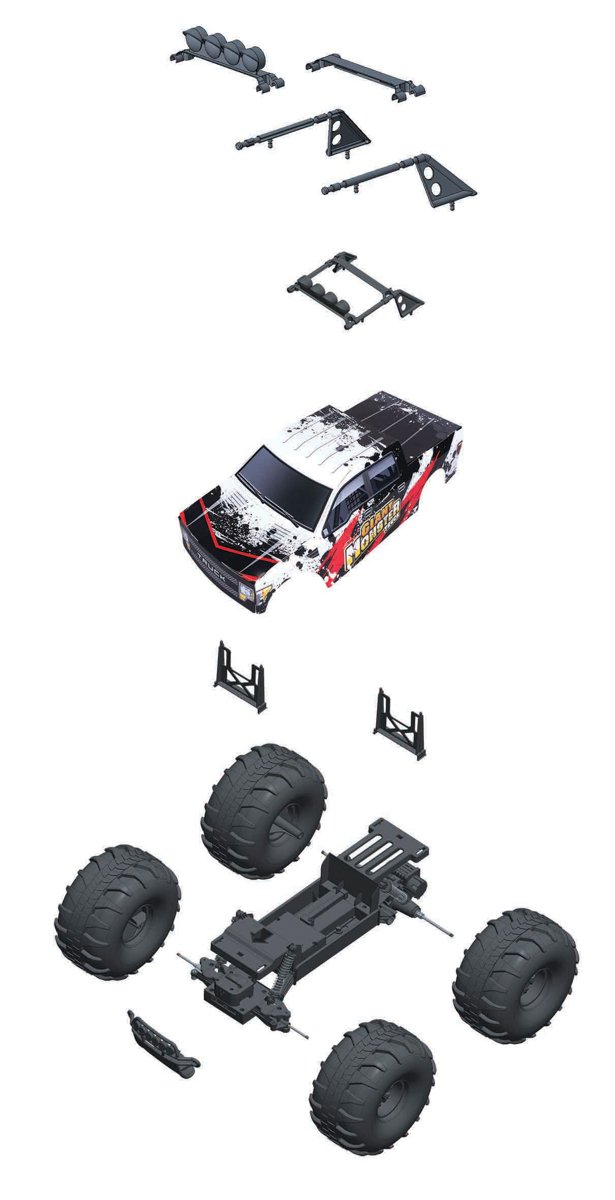 23´´ Giant Wheel Offroad, bílá. Model terénního vozu na dálkové ovládání od značky Maisto, který si nejdřív celý sestavíte a poté s ním můžete řádit v terénu. Auto využívá dobíjecí baterii, která se dobíjí pomocí USB kabelu (obojí součástí balení). Ovladač funguje na 2x AAA baterii. Dosah ovladače až 35m. Balení: 76,2x15,2x48,2cm. Věk: 8+