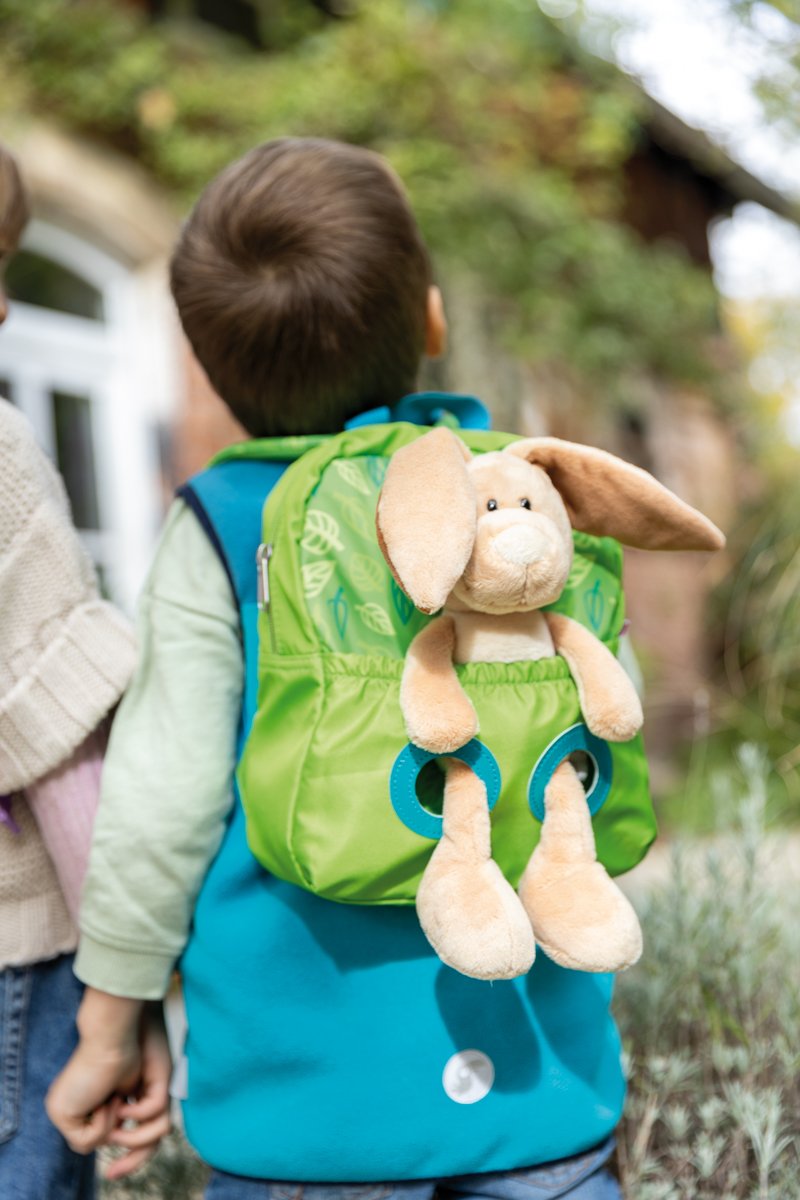Dětský batoh s plyšovou hračkou Zajíček. Kdo by chtěl odejít z domova bez své oblíbené plyšové hračky? Batoh NICI v zeleném designu s motivem lístečků spojuje okouzlující mazlení s funkčností univerzálního dětského batohu. Jedinečný zajíček z heboučkého měkkého plyše NICI sedí na místě v samostatně připevněné kapse s gumičkou a sleduje svět ze zad dítěte. 25 cm plyšové zvířátko lze snadno vyjmout a mazlit se, hrát si a kochat se. Polstrované a nastavitelné ramenní popruhy a příjemně měkká zádová oblast v osvědčené kvalitě NICI zajišťují dobrý komfort nošení. Batoh s integrovanou jmenovkou je skvělým dárkem a ideálním společníkem pro všechny malé dobrodruhy, objevitele světa a baťůžkáře. Nastavitelná délka ramenních popruhů, jedna hlavní kapsa se zavíráním na zip. Výška plyšového zajíčka: 25 cm. Rozměry batohu: 26 x 21 x 13 cm. Věk: 3+