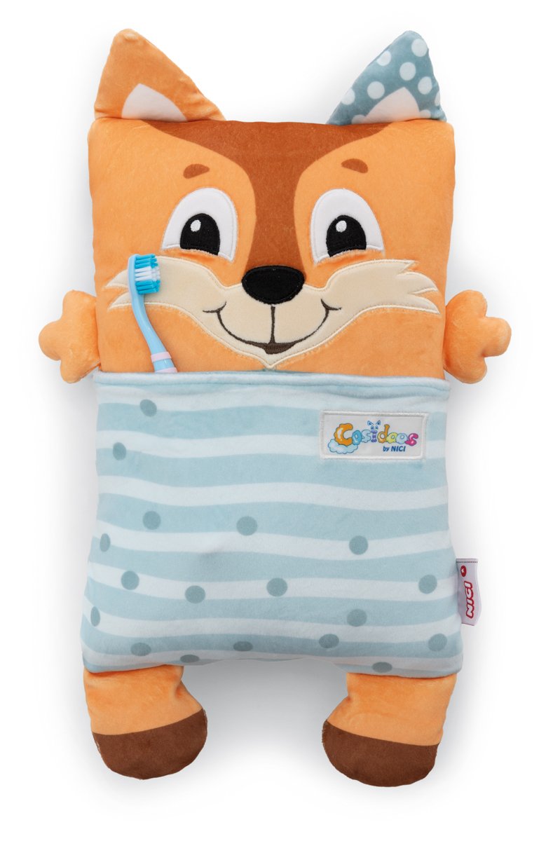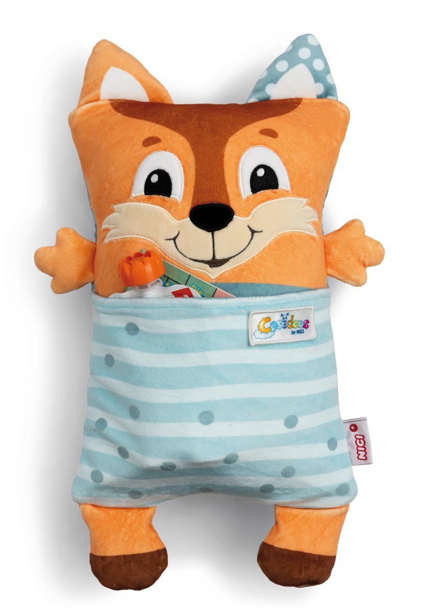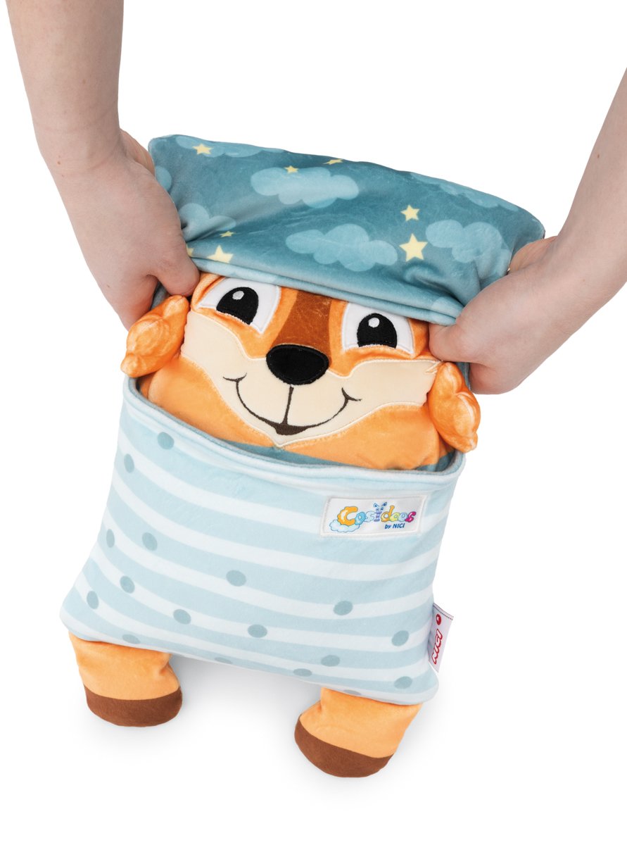 Liška Cosidoos je nadýchaná plyšová hračka, kterou lze snadno proměnit z veselého denního společníka v uklidňující zvířátko a polštářek pro spaní. Červenohnědá liška kombinuje zábavu při hraní s pocitem pohody a zároveň podporuje pochopení rytmu dne a noci. Díky tomu se stává přechod k večernímu usínání opravdovým zážitkem. Lišku lze jediným jednoduchým pohybem ruky snadno převrátit a změnit tak barvy i design podle denní doby. Během dne liška Cosidoos podporuje kreativní hru a stimuluje fantazii, zatímco v noci se liška stává něžným společníkem pro klidný noční spánek. Měkké kapsy jsou ideální pro uložení malých pokladů nebo důležitých předmětů. Oboustranný zázrak vyrobený z vysoce kvalitního, super měkkého plyše NICI je víc než jen hračka – je to věrný přítel, který plynule přechází mezi hrou a odpočinkem. Rozměry hračky: 30 x 20 x 11 cm. Věk 12 m+