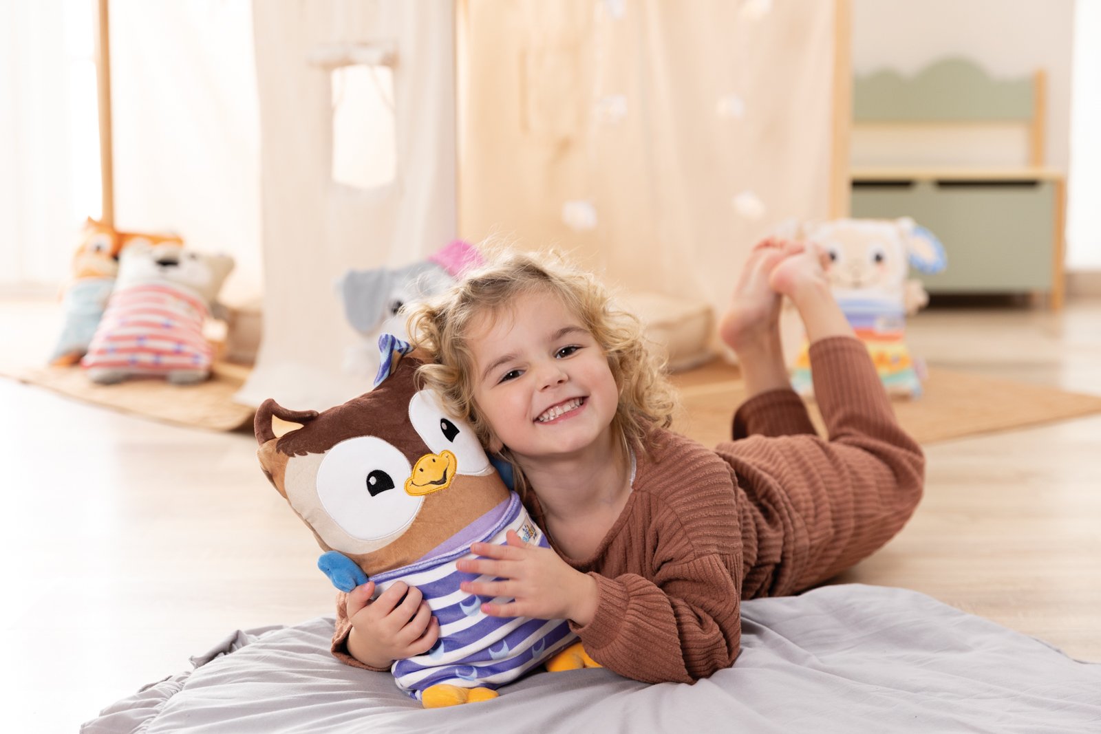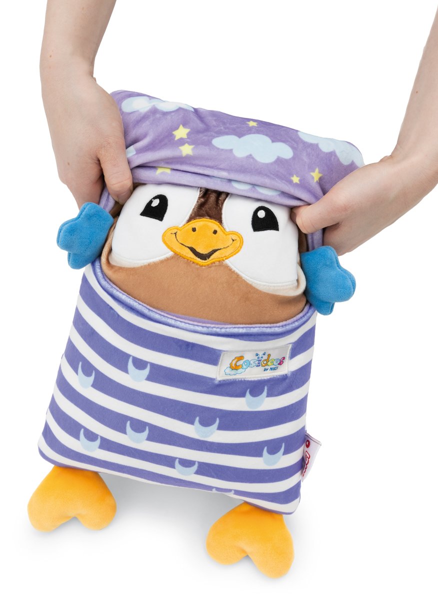 Sovička Cosidoos je nadýchaná plyšová hračka, kterou lze snadno proměnit z veselého denního společníka v uklidňující zvířátko a polštářek na spaní. Roztomilá sovička kombinuje zábavu při hraní s pocitem pohody a zároveň podporuje pochopení rytmu dne a noci. Díky tomu se stává přechod k večernímu usínání opravdovým zážitkem. Sovičku lze jediným jednoduchým pohybem ruky snadno převrátit a změnit tak barvy i design podle denní doby. Během dne sovička Cosidoos podporuje kreativní hru a stimuluje fantazii, zatímco v noci se stává něžným společníkem pro klidný noční spánek. Měkké kapsy jsou ideální pro uložení malých pokladů nebo důležitých předmětů. Oboustranný zázrak vyrobený z vysoce kvalitního, super měkkého plyše NICI je víc než jen hračka – je to věrný přítel, který plynule přechází mezi hrou a odpočinkem. Rozměry hračky: 30 x 20 x 11 cm. Věk 12 m+