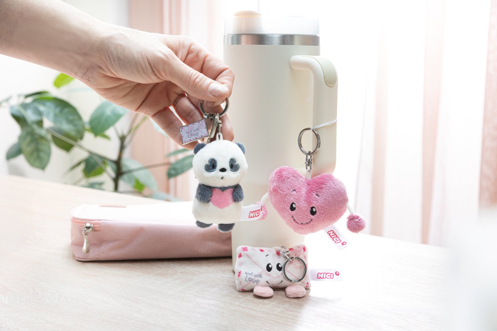 Objevte okouzlující plyšovou klíčenku panda Love, kterou si jednoduše zamilujete. Panda Love má šedobílou srst z kvalitního plyše, očička lemovaná srdíčky a růžové srdíčko na bříšku z něj činí roztomilého společníka. Další malý přívěsek ve tvaru milostného dopisu promění tento drobný dárek pro blízkou osobu ve výjimečný dar, který vyjadřuje lásku a přátelství. Klíčenku lze pomocí pevného kovového kroužku připevnit na klíče, batoh, školní tašku nebo peněženku. Klíčenka je součástí světa produktů NICI GREEN. Pro produkty NICI GREEN se používá téměř výhradně plyš a výplňový materiál vyrobený z recyklovaných materiálů. Pro tento účel se na RPET zpracovávají primárně recyklované PET lahve. Rozměry klíčenky: 8 x 5 x 3 cm. Věk: 3+