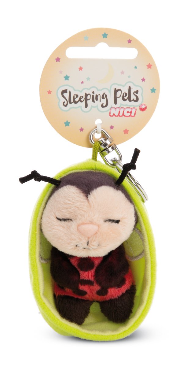 NICI klíčenka spící Beruška 12 cm, zelený košík, GREEN