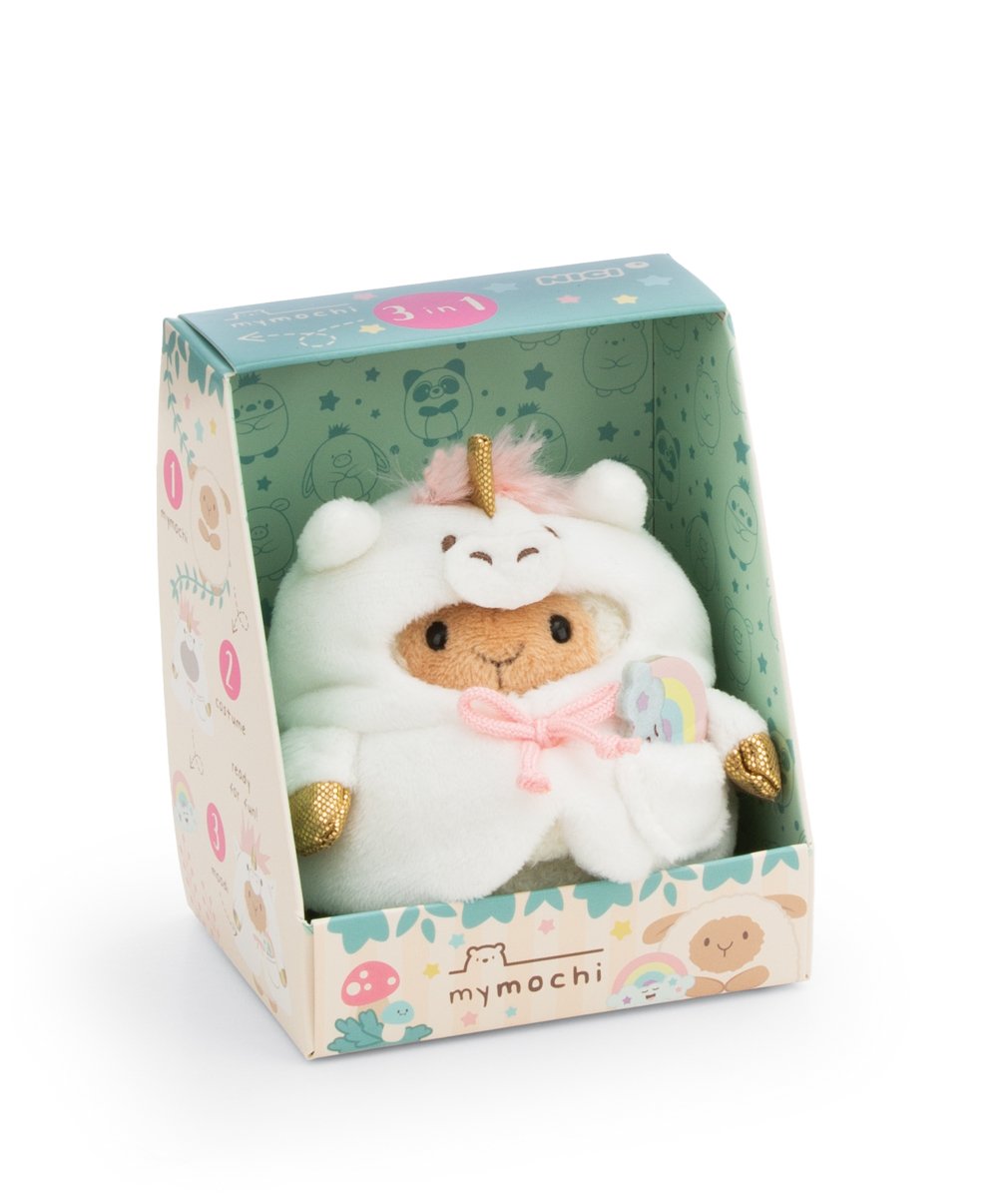 NICI plyš MyMochi Ovečka Wools 8cm s duhou a kostýmem jednorožce, dárkové balení