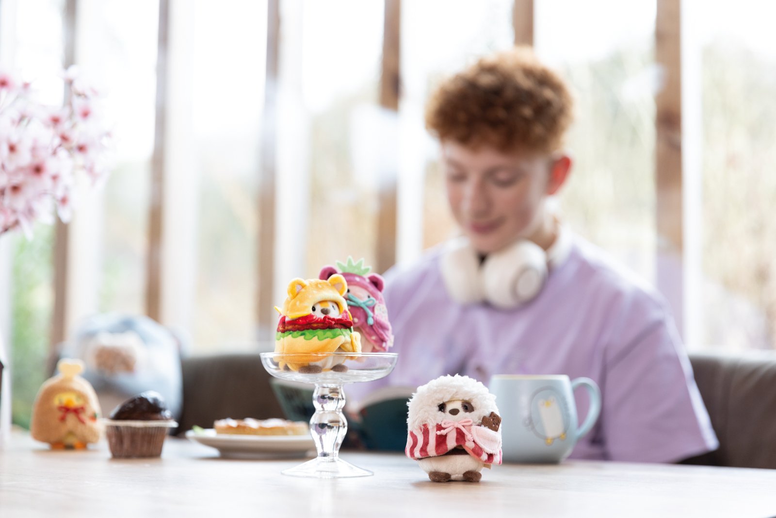 NICI plyš MyMochi Tygr Tiggy 8cm v kostýmu hamburger a okurkou,set dárkové balení 8,5x6,5x10cm