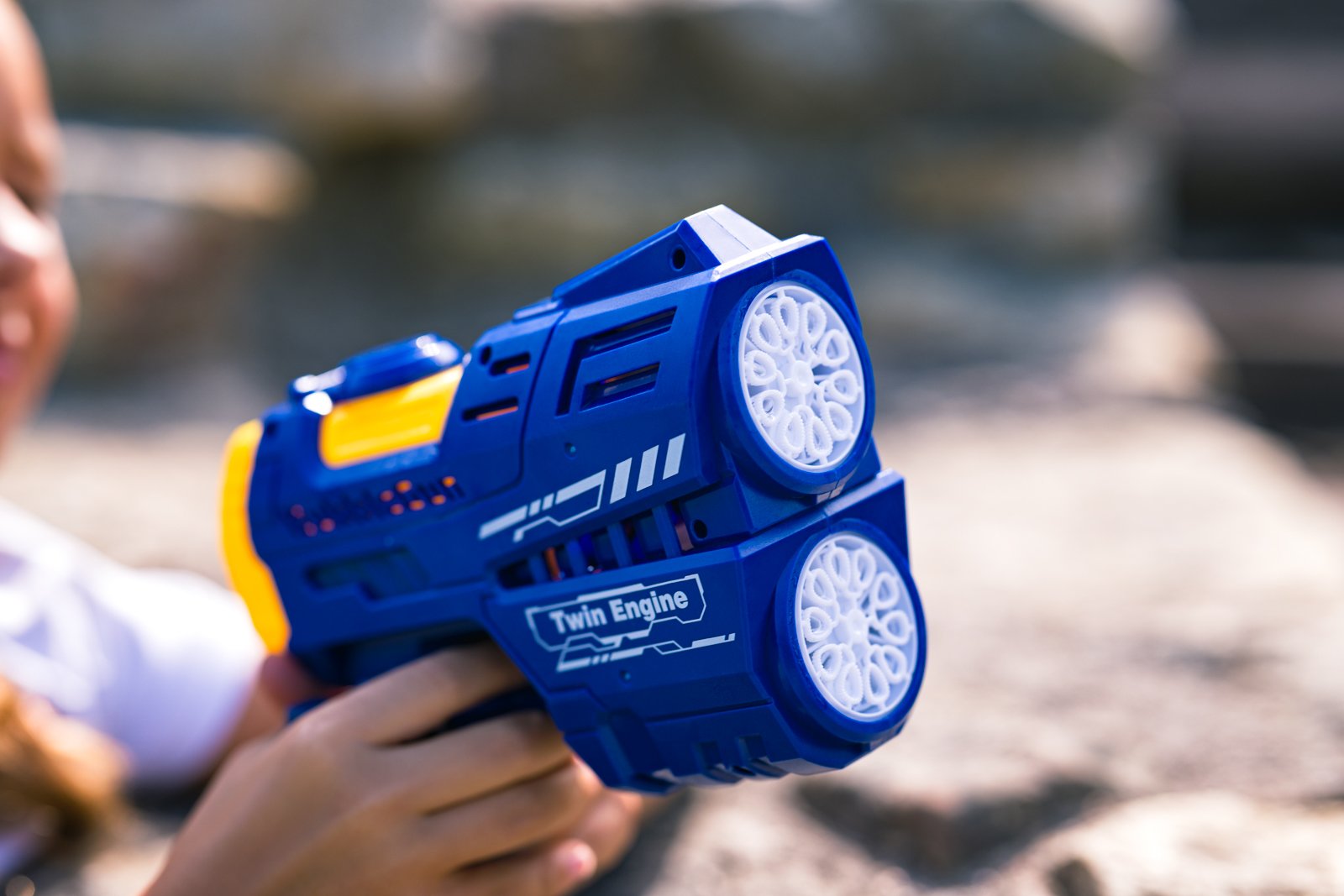 Blaster nové generace s 20 bublinkovými otvory a světelnými efekty. Po zapnutí se rozsvítí a vytváří proud jemných bublinek. Díky integrovanému zásobníku zajistí dlouhotrvající a vizuálně působivou zábavu. 20 otvorů pro intenzivní produkci bublinek. LED světelné efekty. Vestavěný zásobník na 105 ml bublinkového roztoku. Napájení: Lithiová baterie, nabíjení USB kabelem. Assort je náhodný mix modelů. Výběr nelze ovlivnit. V kolekci dvě barevné varianty. Baleno v open boxu. Rozměry produktu: 17 x 20 x 7 cm. Rozměry balení: 22,5 x 22 x 7,5 cm. Věk: 3+