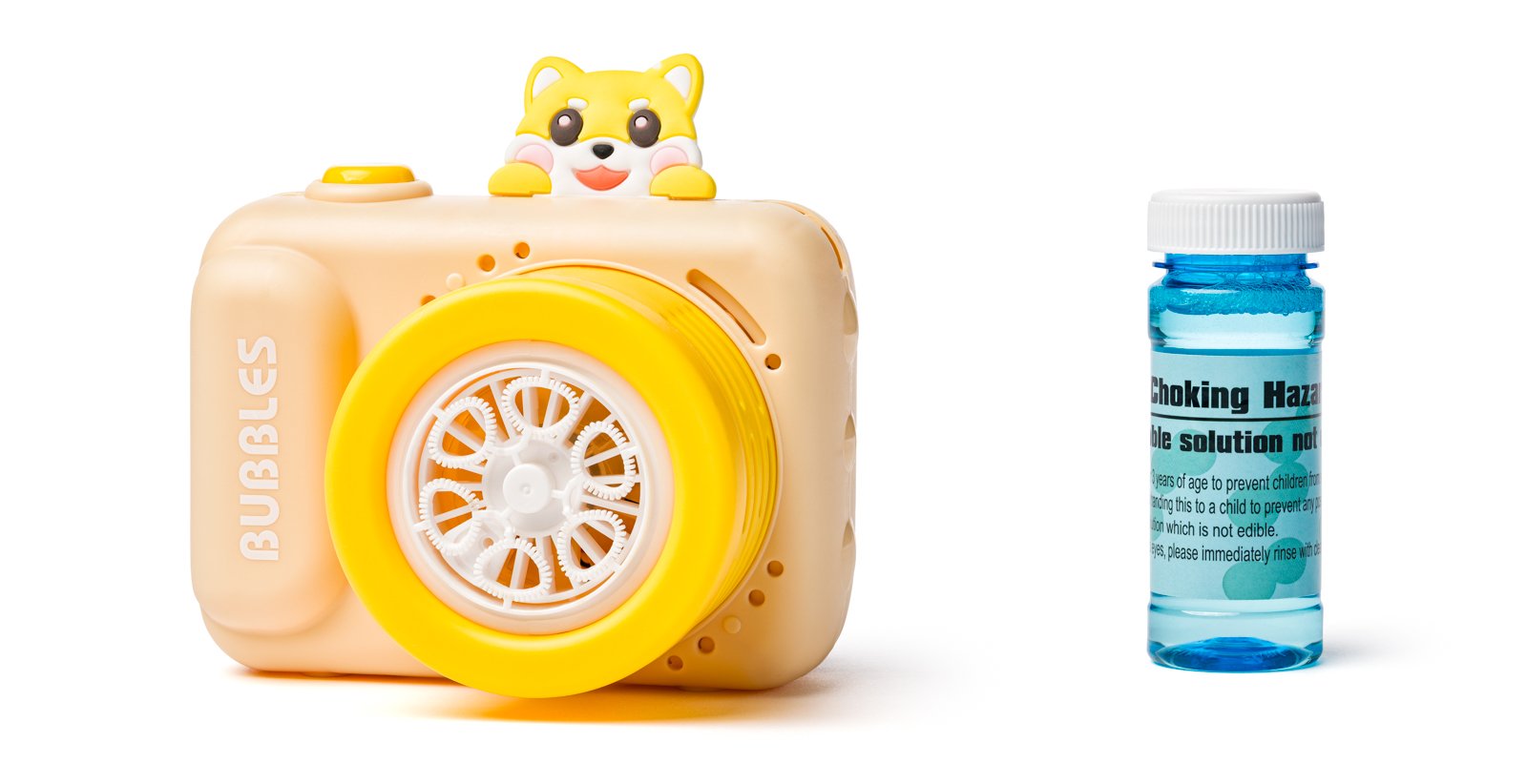 Bublifuk ve tvaru fotoaparátu. Po zapnutí svítí a fouká proud drobných bublinek. Stačí zmáčknout spoušť a show může začít! Součástí balení je 50 ml roztoku na bubliny. Světelné efekty. Napájení: 4 x AA baterie, nejsou součástí balení. Baleno v open boxu. Rozměry produktu: 12 x 12,5 x 9 cm. Rozměry balení: 18 x 18,5 x 9,5 cm. Věk: 3+