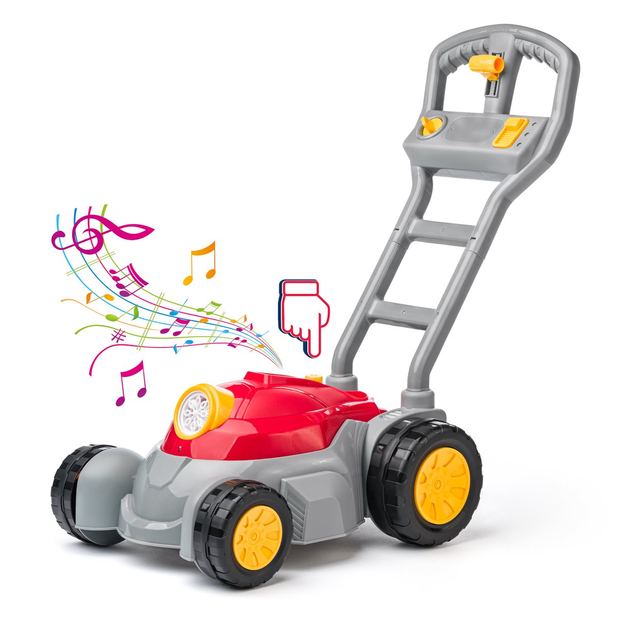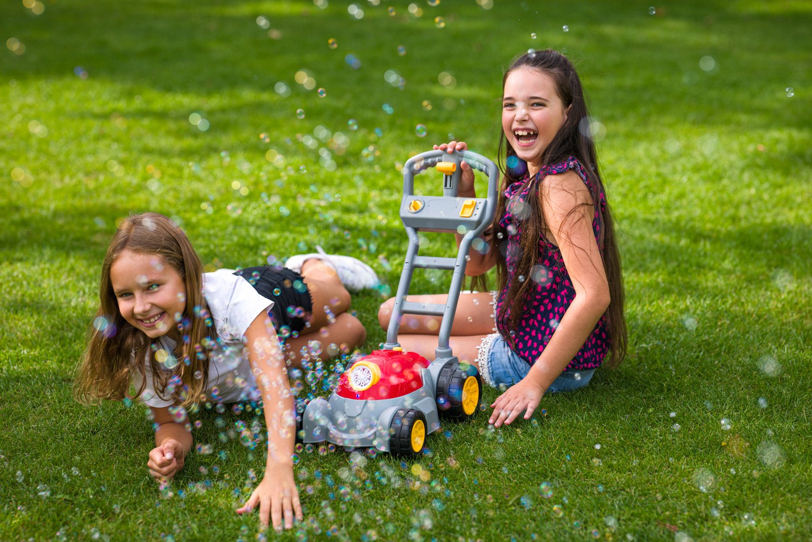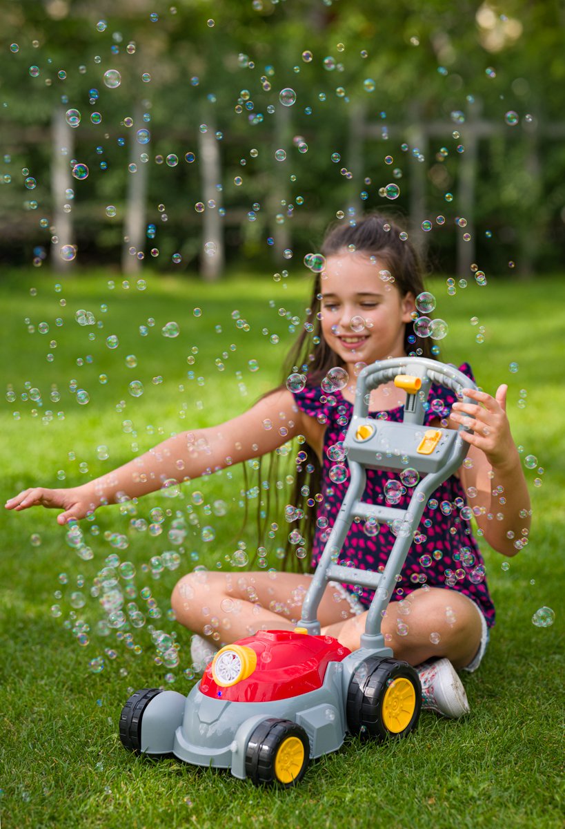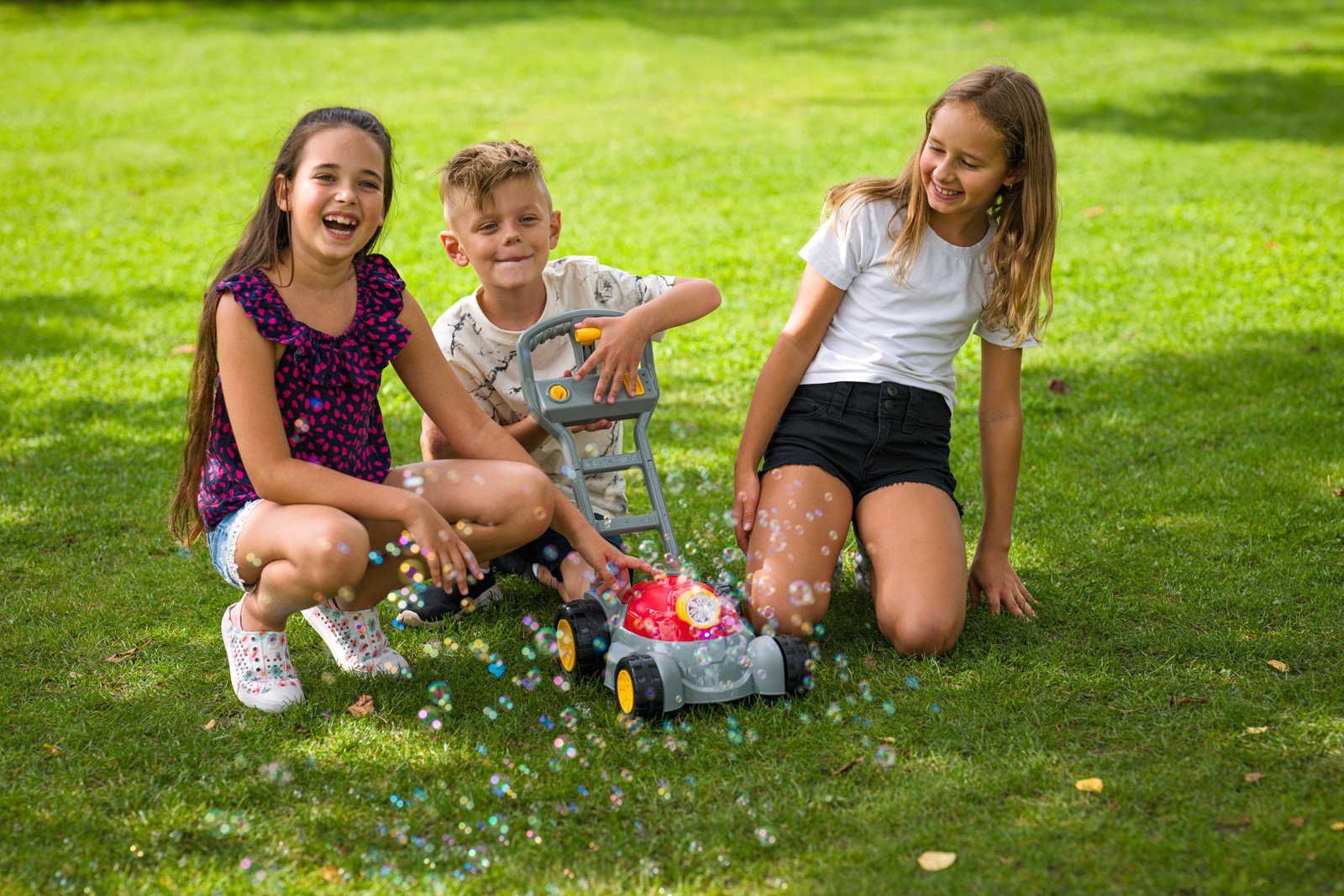 Bublifuková sekačka se světelnými a zvukovými efekty. Našroubujte přiložený roztok bublin do spodní části sekačky a stiskněte tlačítko. Uvidíte množství magických bublin proudících z přední části motorové sekačky. Stiskněte ho podruhé a máte to i s hudebním doprovodem. Hračka je snadno ovladatelná díky pevné plastové rukojeti. Baterie: 3× AA (nejsou součástí balení). Roztok 118 ml do bublifuku je součástí balení. Rozměry sekačky cca: 51 x 25,5 x 67 cm. Rozměry balení: 26,5 x 35 x 18, 5 cm. Věk: 3+
