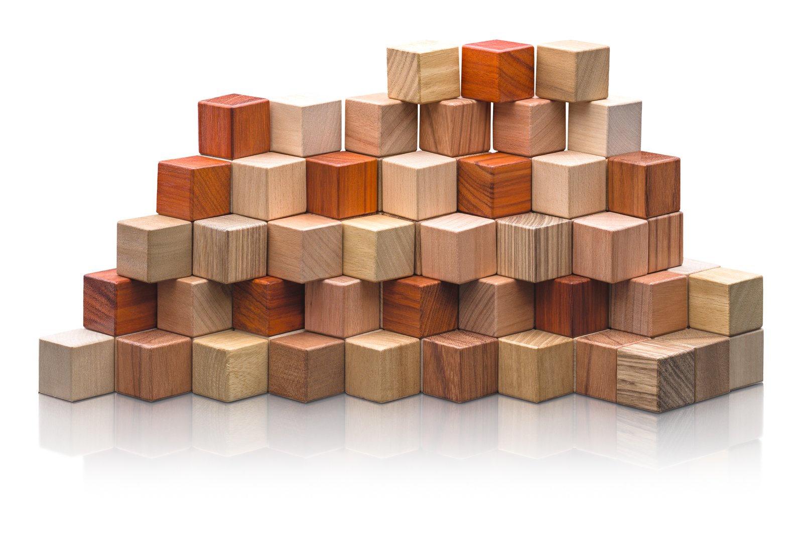 Dřevěné kostky – 100 ks. Klasická sada dřevěných kostek v přírodním provedení, která potěší každého malého stavitele. Kostky mají stejný tvar krychle, díky čemuž jsou ideální pro první stavby, komíny i jednoduché konstrukce. Vyrobeny jsou z několika druhů dřeva, které se liší přirozeným odstínem. Kombinace světlých a tmavších tónů dodává sadě krásný přírodní vzhled bez nutnosti barvení. Hra s kostkami podporuje rozvoj jemné motoriky, kreativity a prostorového vnímání. Nadčasová hračka, která roste s dítětem a nabízí nekonečné možnosti stavění. Rozměry balení: 18 x 32,5 x 6,5 cm. Věk: 1+