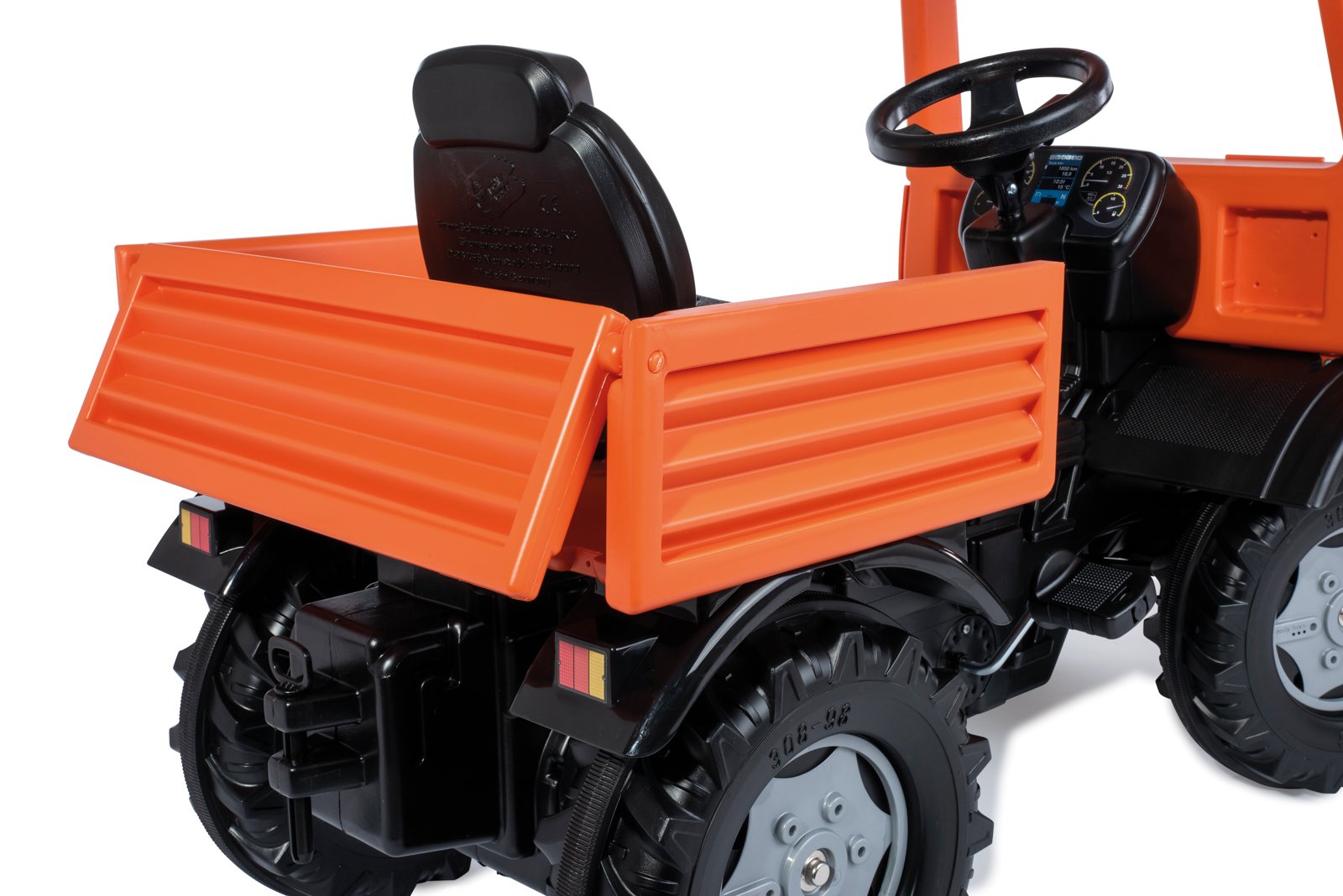 Objevte dokonalou radost z hry se šlapacím vozidlem RollyUnimog pro děti od 3 do 8 let. Toto impozantní vozidlo na hraní je nejen opravdovým lákadlem pro oči, ale nabízí také mnoho funkcí, které děti potěší. RollyUnimog Service je dodáván s majákem RollyFlashlight, která dodává nejen další zábavu, ale také zvyšuje bezpečnost při hře. Poloha sedadla je nastavitelná tak, aby se dokonale přizpůsobila růstu dítěte, což zaručuje dlouhotrvající radost z jízdy. Auto RollyUnimog Service je vybaveno tichými pneumatikami, které umožňují hladkou a plynulou jízdu po různých površích. Optimalizovaný poloměr otáčení díky otočnému řízení nápravy usnadňuje mladým řidičům projíždět těsnými zatáčkami a přidává k zážitku ještě více zábavy. Napnutí řetězu je nastavitelné pro jemné doladění výkonu vozidla a chráněný řetězový pohon zajišťuje bezpečnost vašeho dítěte při hře. S předními a zadními spojkami může vozidlo RollyUnimog snadno přepravovat různé přívěsy a příslušenství. Robustní rukojeť řízení poskytuje snadné ovládání a umožňuje mladým řidičům plně ovládat své vozidlo. Navíc můžete tento model vylepšit funkčními doplňky, které rozšíří herní možnosti a podnítí fantazii vašeho dítěte. Rozměr auta: 54 x 118 x 81 cm. Rozměr balení: 54 x 119,5 x 55 cm. Váha produktu: 16,1 kg. Dětská velikost: 104–134. Věk: 3+