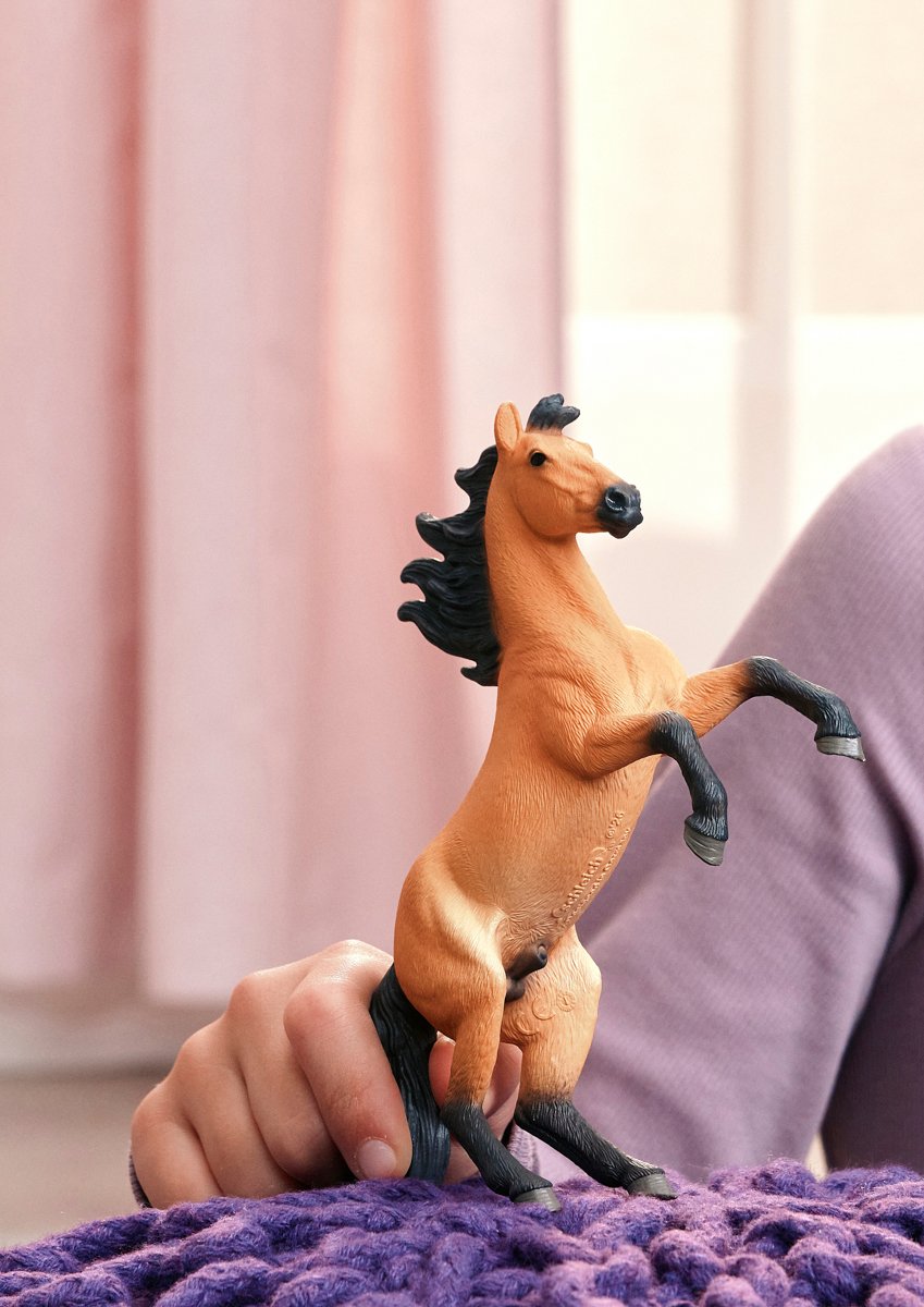 Hřebec mustanga má obzvlášť ohnivý temperament, který z něj srší v každém okamžiku. Energicky se vzpíná na silných zadních nohách a přední nohy natahuje do vzduchu. Štíhlou hlavu má hrdě vztyčenou. Miluje svobodu a dobrodružství, o tom zkrátka nemůže být pochyb. Nejraději cválá prérií v plné rychlosti, až se mu pod kopyty víří prach. Hřebec mustanga vypadá naprosto úchvatně. Hustá, černočerná hříva mu vlaje ve větru. Má plavou srst, která je tmavě kontrastní jen na nohách a nozdrách a úžasně podtrhuje jeho impozantní pózu. Figurka Schleich® patří do tematického světa HORSE CLUB a je vhodná pro děti od 5 do 12 let. Rozměry figurky: 15,5 x 4,5 x 12 cm. Nevhodné pro děti do 3 let. Věk: 5+