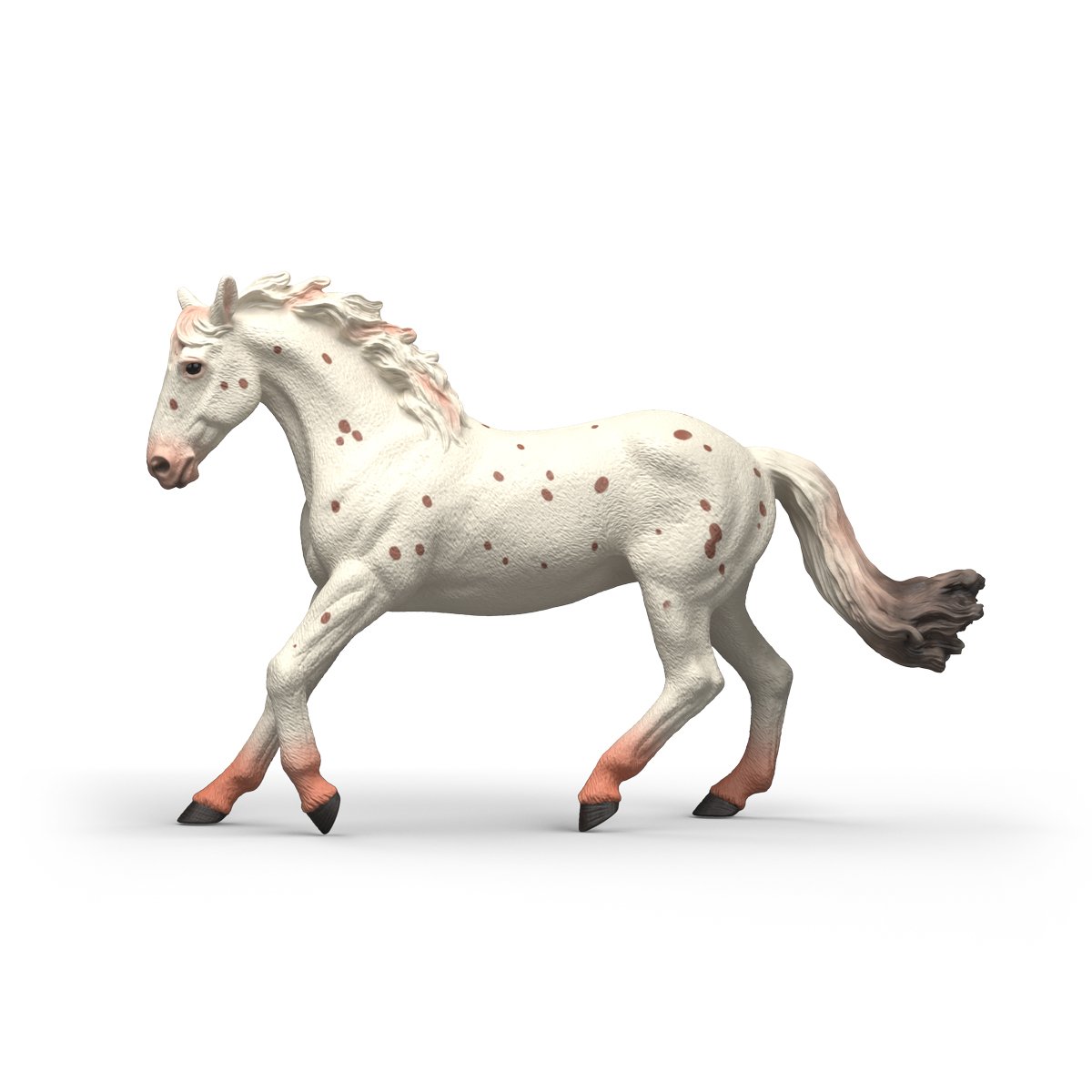 Krásná knabstrupská klisna svým nápadným vzorem srsti k sobě strhává pozornost celého okolí. Okouzlila zejména knabstrupského valacha. Ale ona si to ani neuvědomuje. Je zcela ponořena do svého prudkého cvalu přes pastvinu. Užívá si, když si vítr pohrává s její hustou hřívou a ocas jí vlaje v rychlém běhu. Elegantní knabstrupská klisna má bílou srst s hnědými skvrnami. Také hřívu a ocas má bílé s několika hnědými žíněmi. Její pěkný vzor srsti obzvlášť vynikne, když se vesele rozběhne po pastvině. Je na ni krásný pohled! Figurka Schleich® patří do tematického světa HORSE CLUB a je vhodná pro děti od 5 do 12 let. Rozměry figurky: 10,5 x 3,8 x 16,1 cm. Nevhodné pro děti do 3 let. Věk: 5+