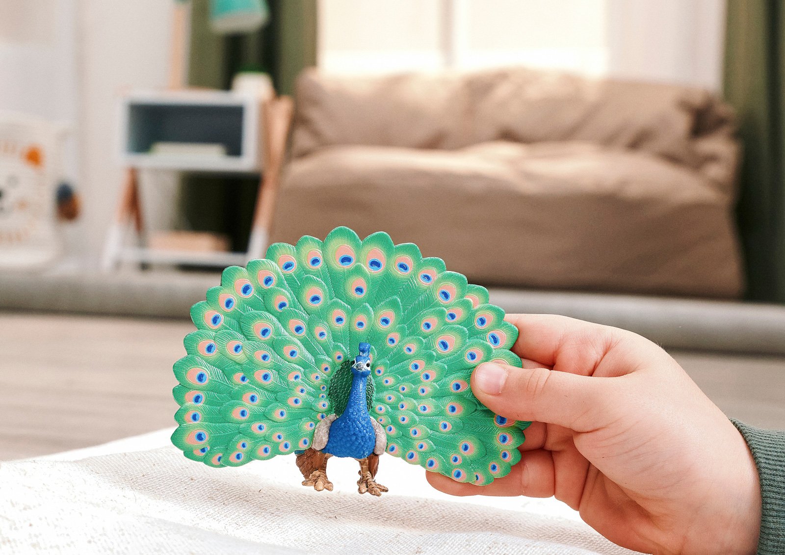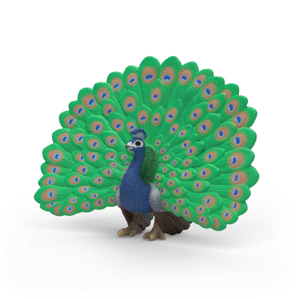 Páv je bezpochyby nejelegantnějším obyvatelem statku. Se vztyčenou hlavou majestátně kráčí po dvoře. Moc dobře ví, jak je krásný. Svůj dlouhý krk nese natažený a na malé hlavě má rozkošnou korunku z peří. Svá dlouhá ocasní pera dokáže roztáhnout do podoby nádherného vějíře. V tu chvíli si můžete prohlédnout pestré peří modré, zelené a zlaté barvy. Dokonce i slepice na něj valí oči – tak tohle jejich kohout nedokáže! Páv pochází z Indie, ale cítí se jako doma i u statkáře Paula, pokud má ovšem dostatek prostoru, aby se mohl naparovat. Díky svému oslnivě modrému krku a neskutečně krásnému opeření je páv skutečnou pastvou pro oči a velmi si pozornosti okolí užívá. Elegantně se prochází po statku a přitahuje k sobě pohledy všech kolem. Figurka Schleich® patří do tematického světa FARM WORLD a je vhodná pro děti od 3 do 8 let. Rozměry figurky: 8 x 11 x 3,6 cm. Nevhodné pro děti do 3 let. Věk: 3+