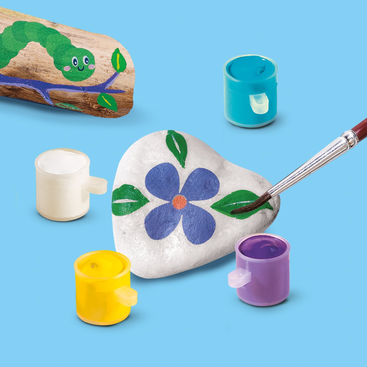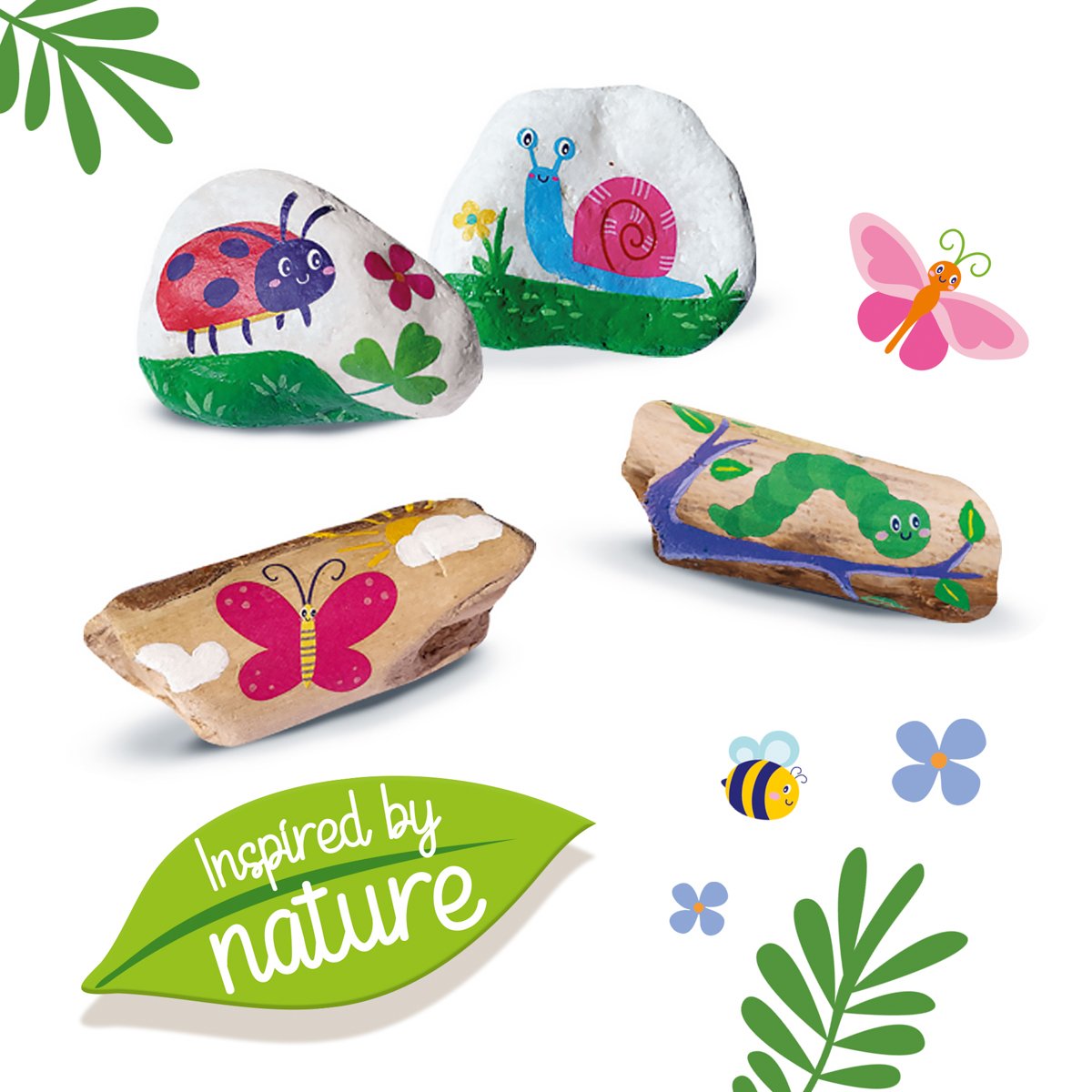 Malování kamínků a naplavených klacíků – vytvořte si vlastní přírodní umělecká díla. Tato kreativní sada, inspirovaná přírodou, obsahuje vše, co potřebujete k zdobení kamenů a dřívek barvami. Ideální pro kreativní děti, které rády tvoří z přírodních materiálů. Obsah sady: 3 bílé kameny, směs naplaveného dřeva, 6 barviček, štětec, samolepky a návod. Podporuje rozvoj dětské fantazie, jemné motoriky a smyslu pro umění. Baleno v krabičce. Rozměry balení: 20 x 20 x 4 cm. Nevhodné pro děti do 3 let. Věk: 5+