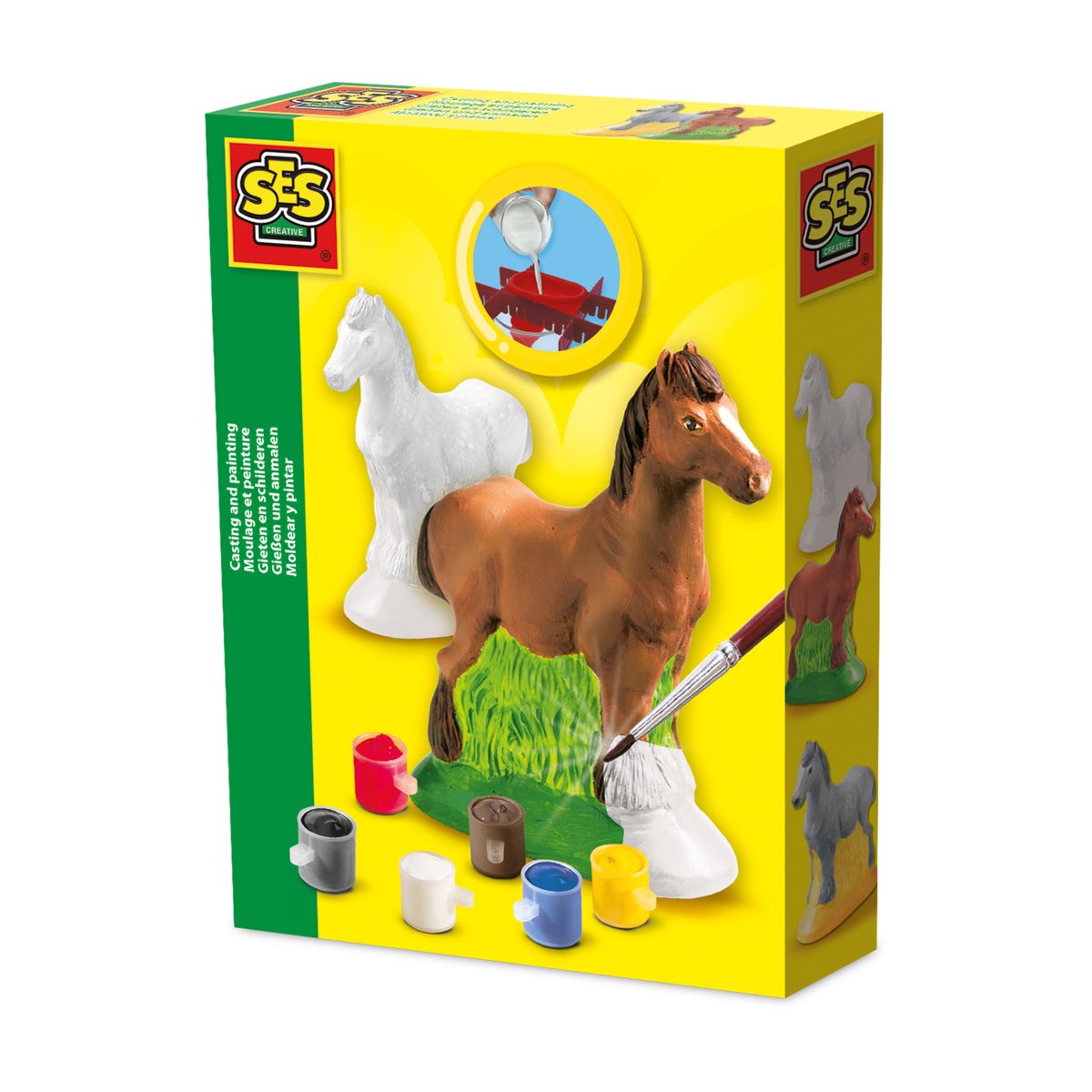 Kompletní sada pro výrobu sádrové 3D figurky koně. Odlijte sádru do velké formy, nechte ji ztvrdnout a poté koně namalujte těmi nejkrásnějšími barvami. Detailní forma, rychleschnoucí sádra a zářivé barvy s výbornou kryvostí. Barvy i sádra jsou snadno omyvatelné z pokožky i textilu – ideální pro kreativní hraní bez starostí. Obsah sady: sádra, plastová forma, 6 kelímků s barvou, štětec a návod k použití. Baleno v krabičce. Rozměry balení: 20 x 15 x 4 cm. Nevhodné pro děti do 3 let. Věk: 5+