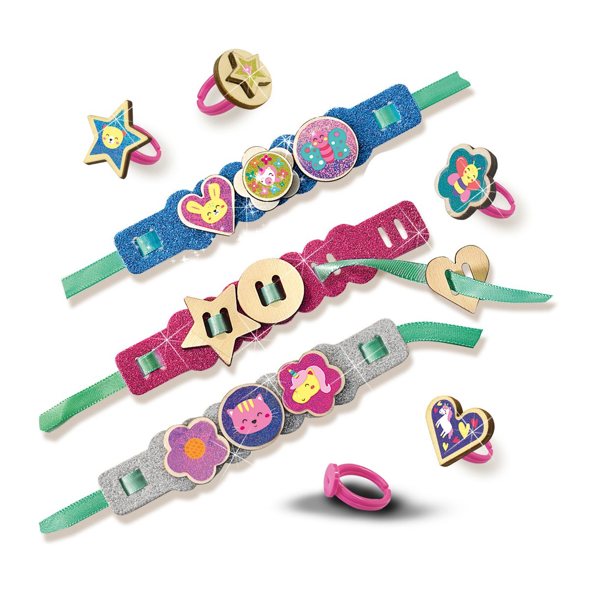 Navrhněte a vyrobte si své vlastní náramky a prstýnky s touto nádhernou sadou. Tato kreativní sada obsahuje vše, co potřebujete k výrobě barevných náramků a prstenů, které můžete ozdobit a hrdě nosit. Ideální pro malé designéry, kteří milují třpytky a kreativitu. Děti si samy vyberou, jak ozdobí své šperky: třpytkami, přívěsky nebo kombinací obojího. Pěnový materiál je měkký na dotek, takže náramky se pohodlně nosí. Obsah sady: 3 třpytivé pěnové náramky v různých barvách, 5 růžových plastových prstýnků, třpytivé samolepky, dřevěné přívěsky a návod. Bezpečné a vhodné pro děti od 3 let. Baleno v krabičce. Rozměry balení: 20 x 15 x 4 cm. Věk: 3+